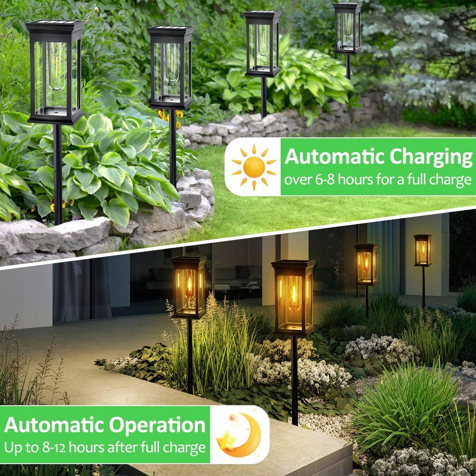 Fuqiduo Lampy solarne na zewnątrz 4 sztuki, wodoodporne lampy solarne IP65 z ciepłym białym światłem, lampy solarne do ogrodu na taras, trawnik, podwórko i ścieżki