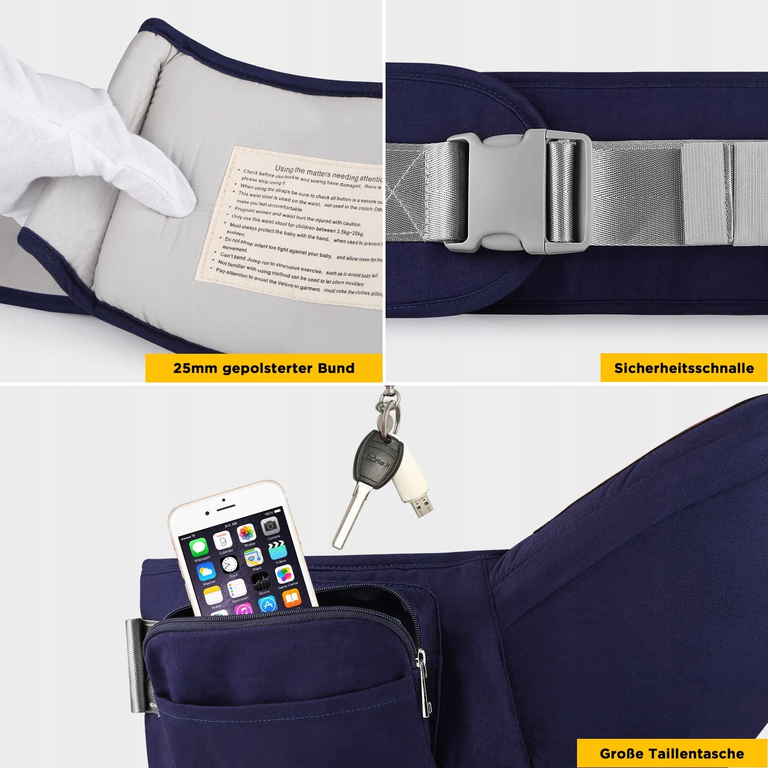 GAGAKU Baby Hüftsitz Leichte Taille Hocker 4 Tragepositionen dla dzieci 0-36 miesięcy Noworodek - Niebieski