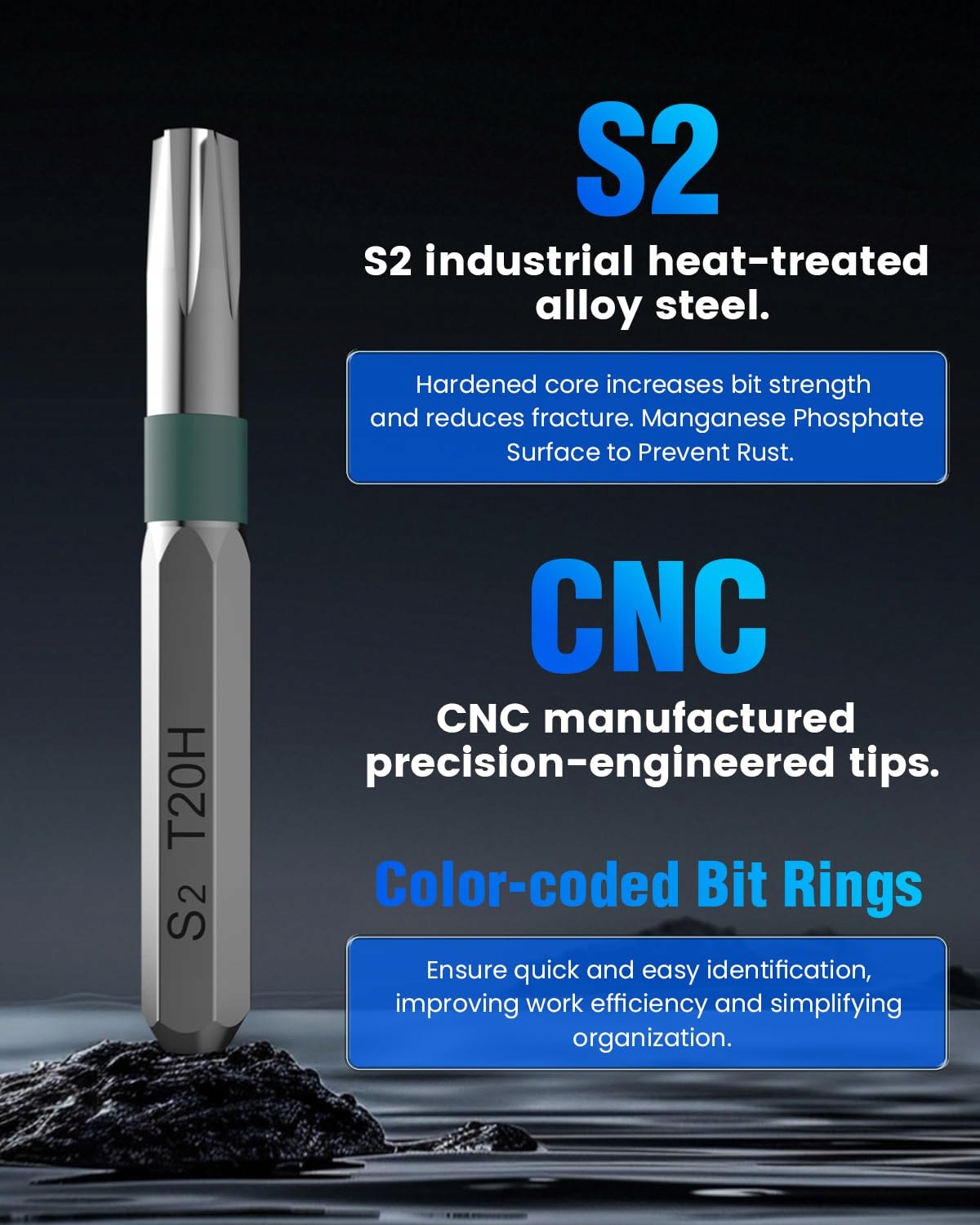 【Długie wiertła ze stali S2 i proces CNC】 Ten mini zestaw narzędzi do naprawy wkrętaków wykonany jest z wysokiej jakości stali S2 o długiej długości, co zapewnia doskonałą twardość, precyzję i wytrzymałość. Precyzyjnie frezowane bity CNC idealnie pasują do śrub, chroniąc zarówno bit, jak i elementy mocujące przed uszkodzeniami. 17 mm długi uchwyt jest w stanie wkręcać lub wykręcać głębsze śruby