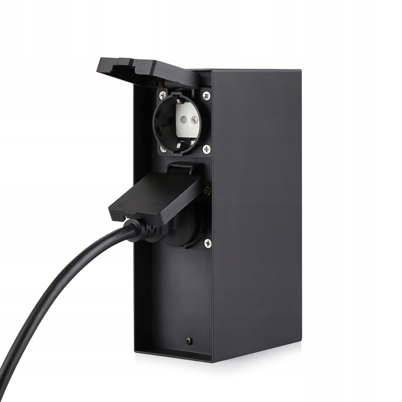 Słup ogrodowy z gniazdkami 4-funkcyjnymi, max. 3680W, IP44 do użytku na zewnątrz - Kwadratowy Czarny