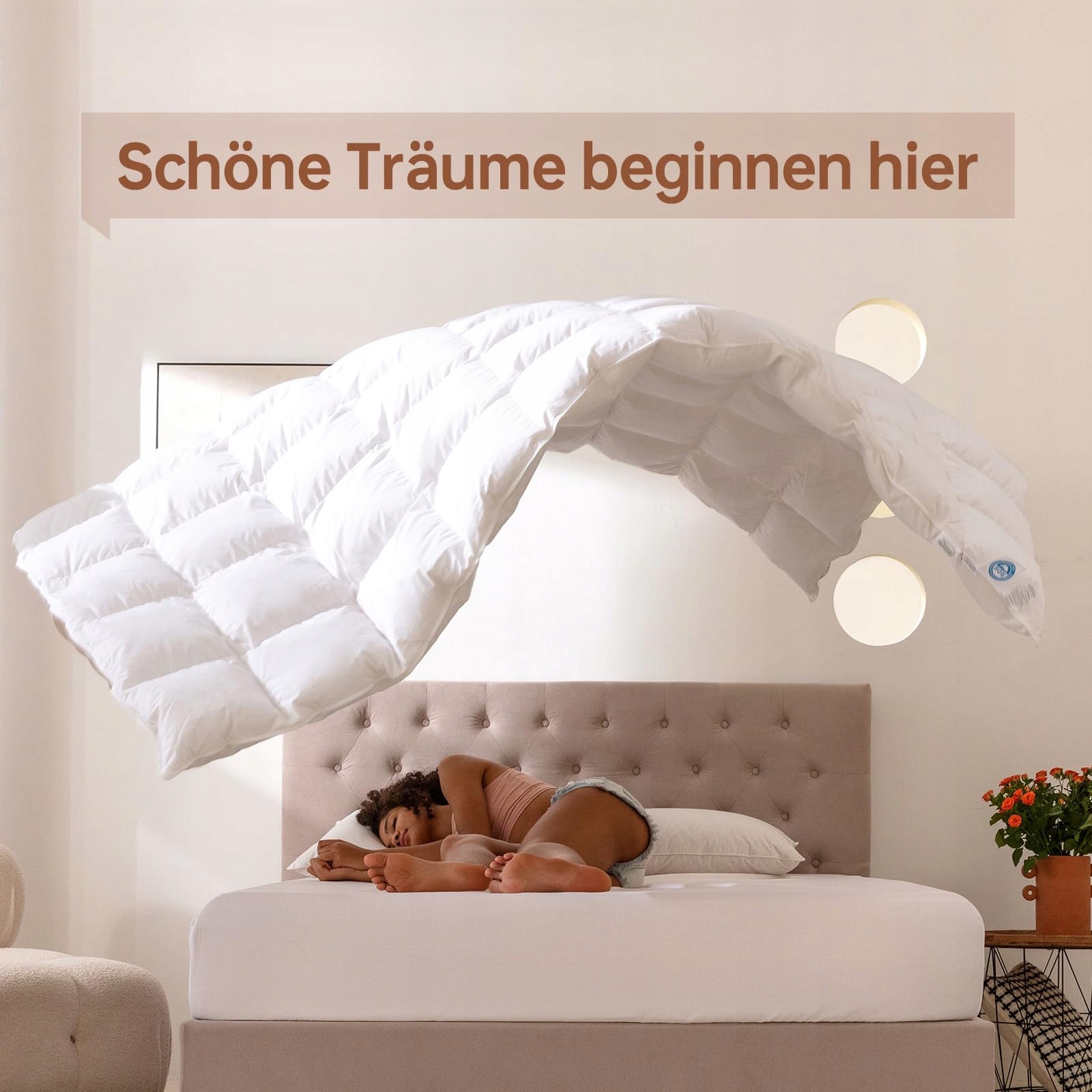 GDFP Kołdra puchowa 135x200 cm, waga wypełnienia 900g, 80% puchu i 20% pierza, kołdra, pranie w pralce, klasa cieplna: ciepła, odpowiednia dla alergików, Öko-Tex, Downpass, Biała