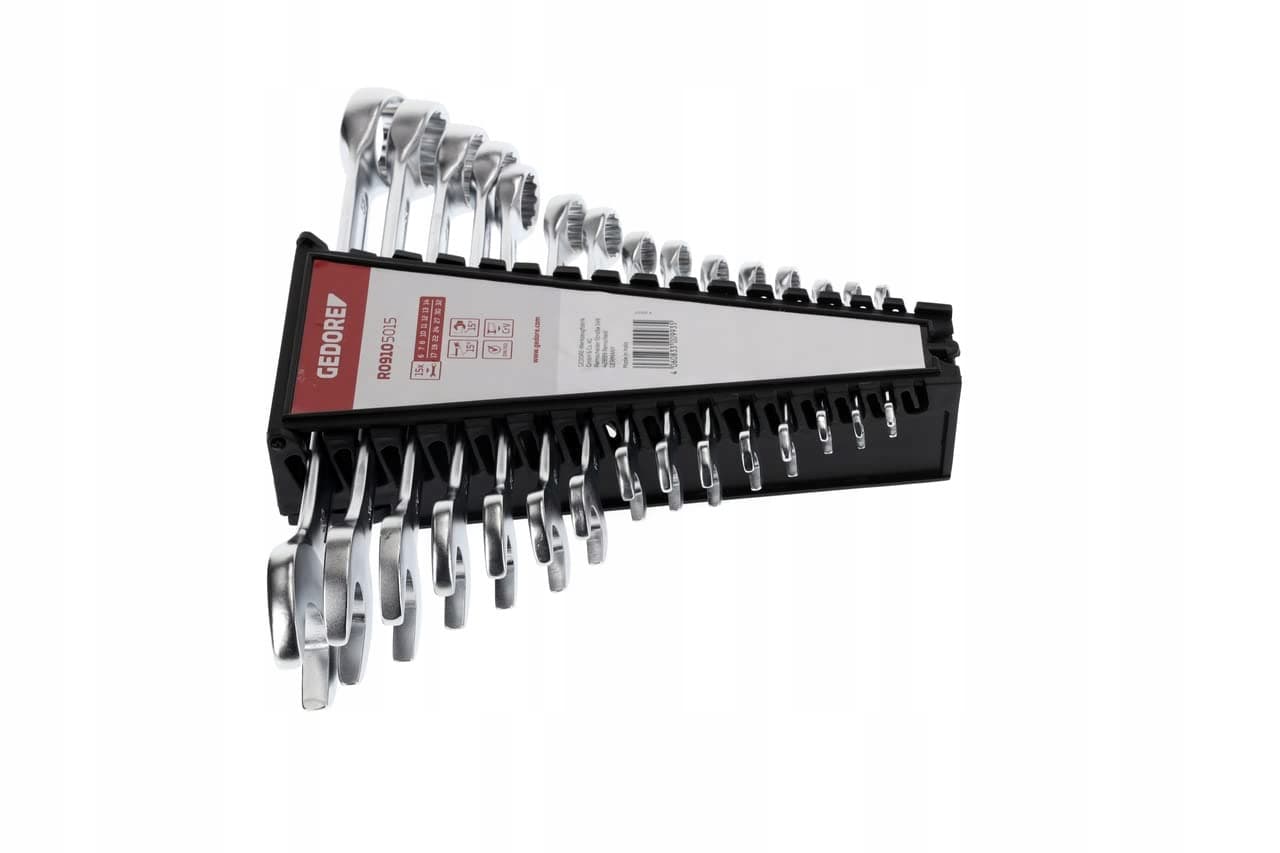 Zakres dostawy: 1x zestaw kluczy pierścieniowych i oczkowych GEDORE red w tym uchwyt, 15-częściowy, rozmiary kluczy: 6 - 32 mm, waga: 3,1 kg, wymiary: 8 x 28,5 x 7 cm, R09105015, 3300993