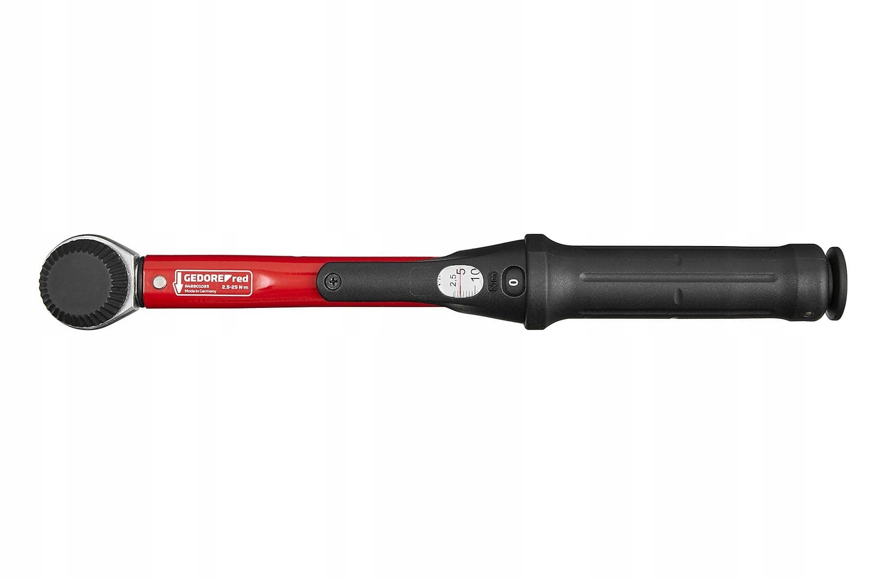 Zestaw narzędzi rowerowych GEDORE red z momentem obrotowym, 21-elementowy, klucz dynamometryczny 1/4' 2,5-25 Nm, przedłużka kardana, adapter napędowy, bity, klucz płaski, zestaw naprawczy z torbą, R21702021