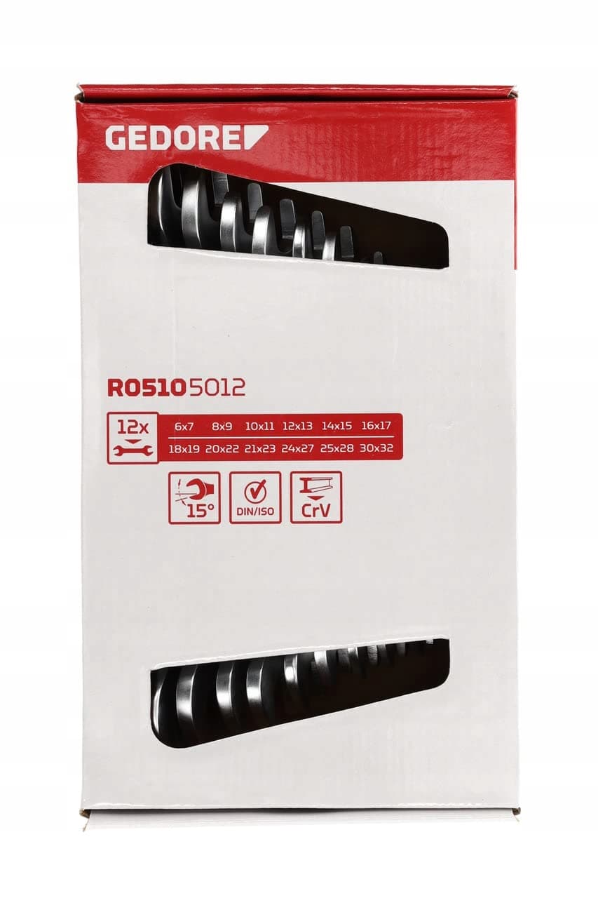 ZAWARTOŚĆ DOSTAWY: 1 x zestaw kluczy podwójnych GEDORE red, szerokość klucza: 6-32 mm, 12 części, waga: 2420 g, numer artykułu: R05105012