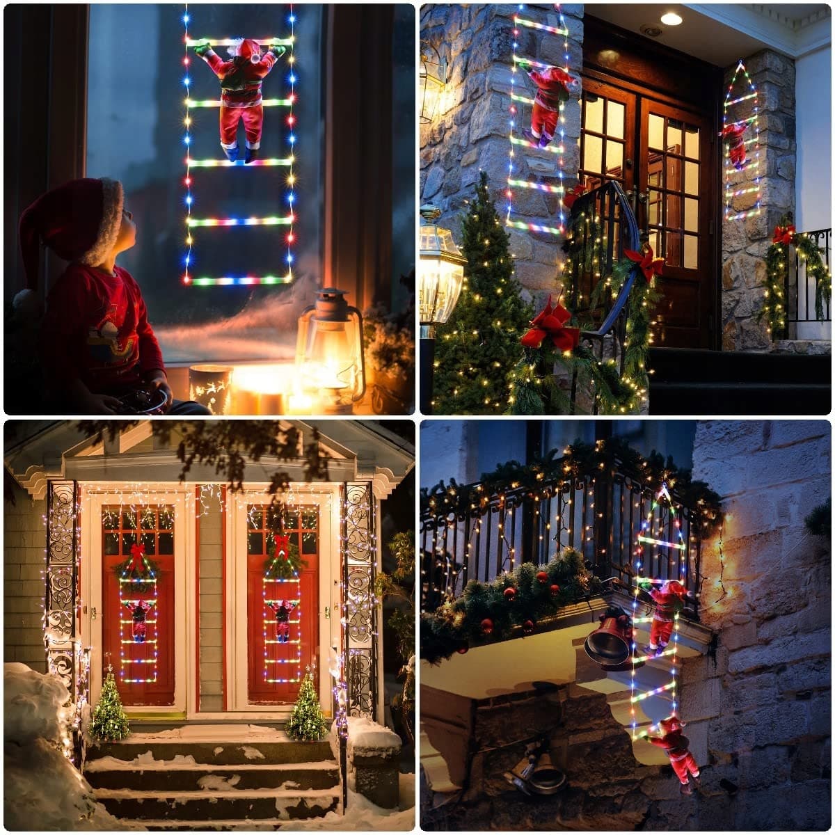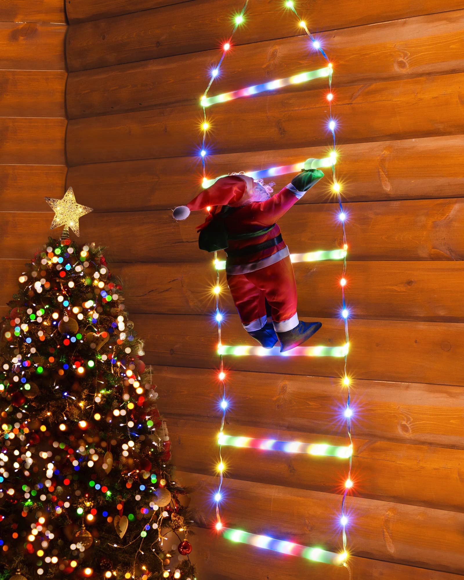 NOWE oświetlenie świąteczne - 2023 NOWA łańcuch świetlny z designem drabiny, Mikołaj na drabinie, możemy go łatwo umieścić na schodach, werandzie, drzwiach, sypialni, ogrodzie, tarasie, choince. To piękna dekoracja świąteczna dla Twojego domu, ale także prezent świąteczny dla Twoich bliskich.