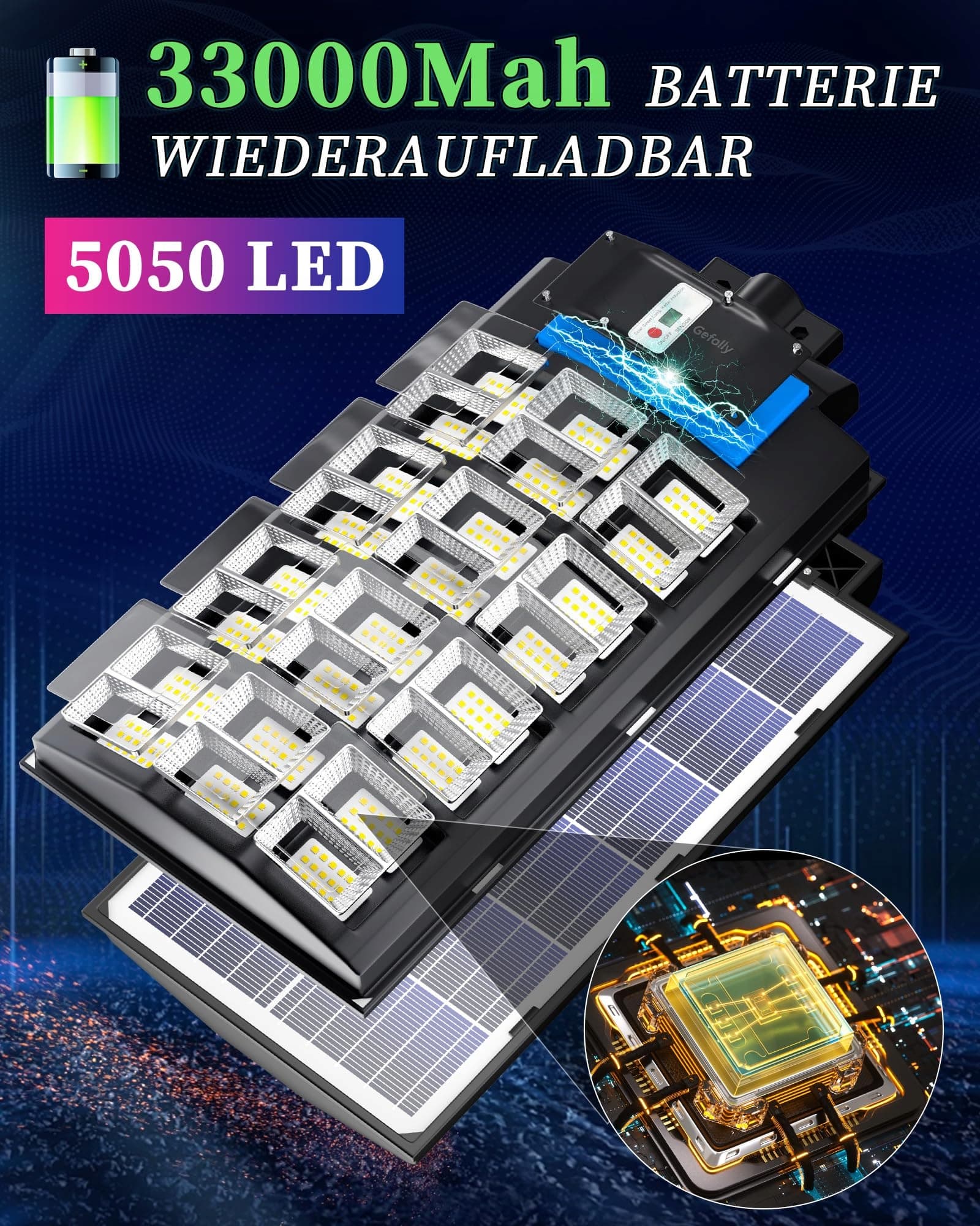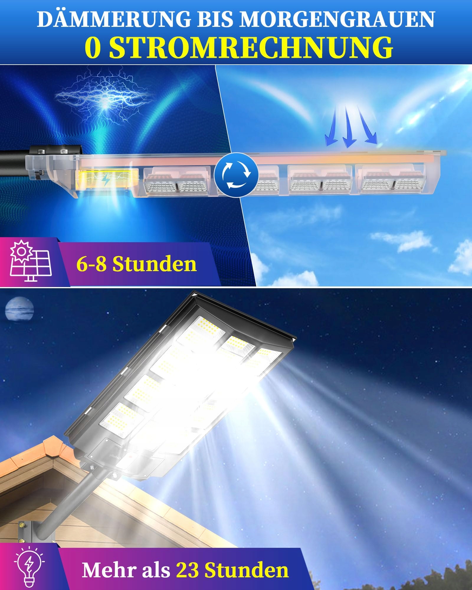 【BRAK RACHUNKÓW ZA PRĄD】Gefolly SL-6800W solarna latarnia uliczna oferuje światło dzienne o temperaturze barwowej 6500 K, wyposażona w 192 ultra jasne diody LED i baterię 33000 mAh (czas pracy do 50000 godzin). Jasność naszych ultra jasnych diod LED jest 20 razy większa niż zwykłych diod. Zasilanie solarne, co oznacza brak kosztów energii i minimalne wymagania konserwacyjne, stanowiąc ekonomiczną opcję na długoterminowe użytkowanie