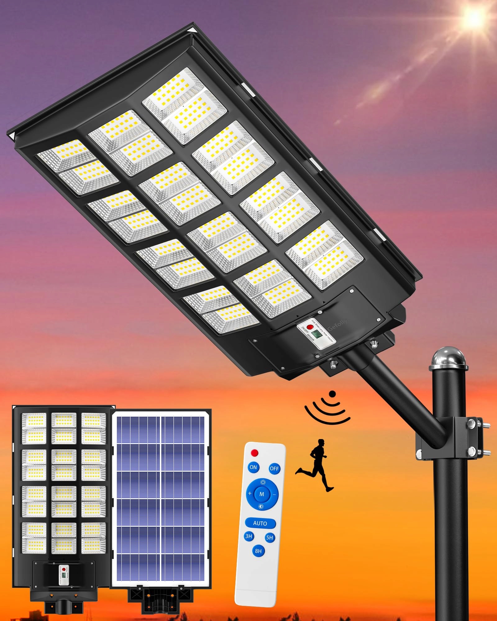 GEFOLLY Lampa Solarna 600000LM Czujnik Ruchu IP67 Oświetlenie Ogrodu