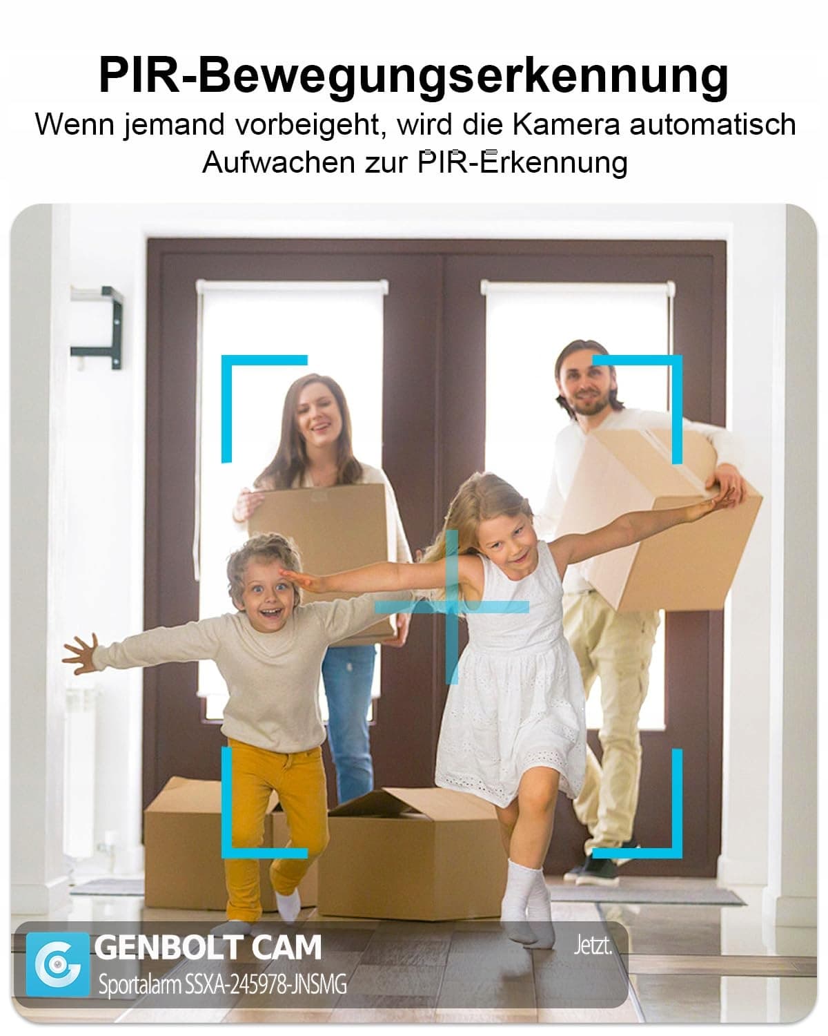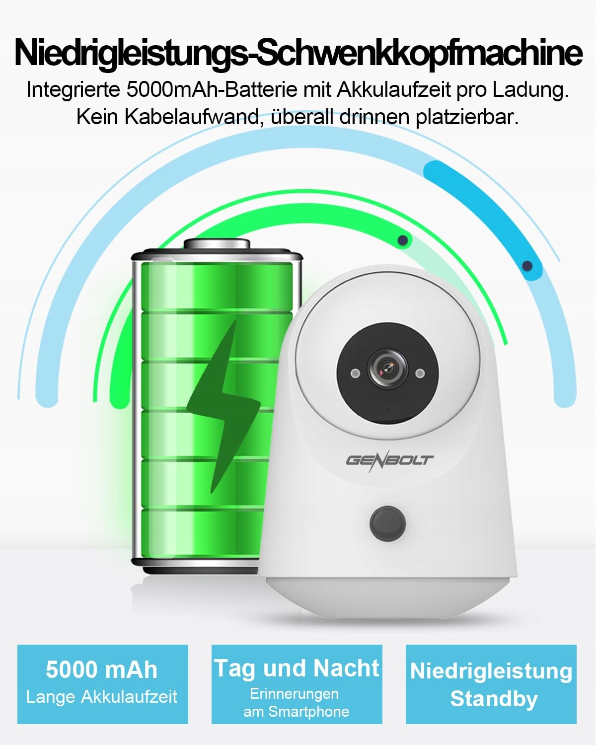 GENBOLT 2K WLAN Kamera monitoringu wewnętrznego Akumulator Bezprzewodowa, WiFi IP Kamera monitoringu zasilana baterią 5000mAh, Kamera CCTV z PIR, Dla zwierząt domowych/starszych osób/dzieci