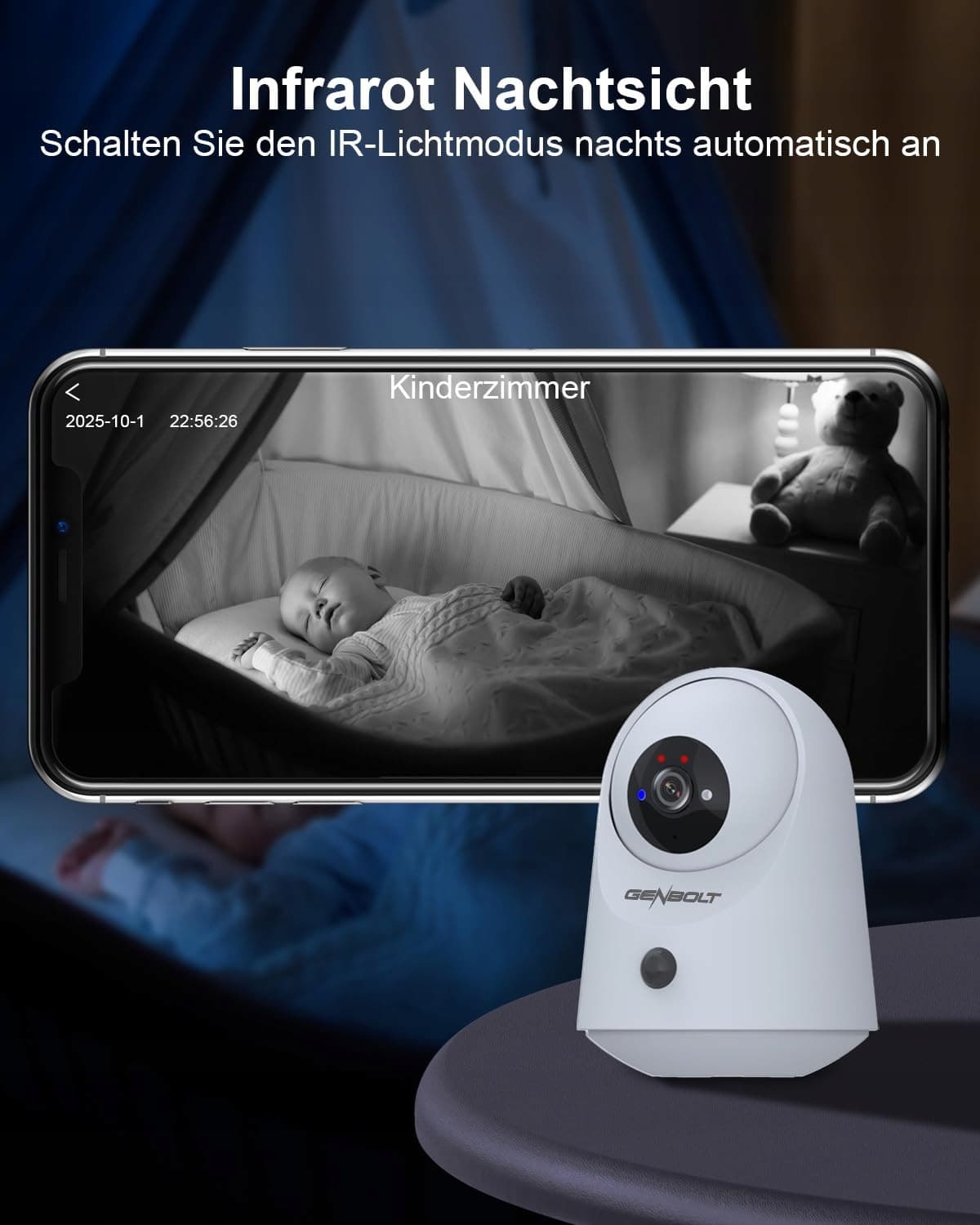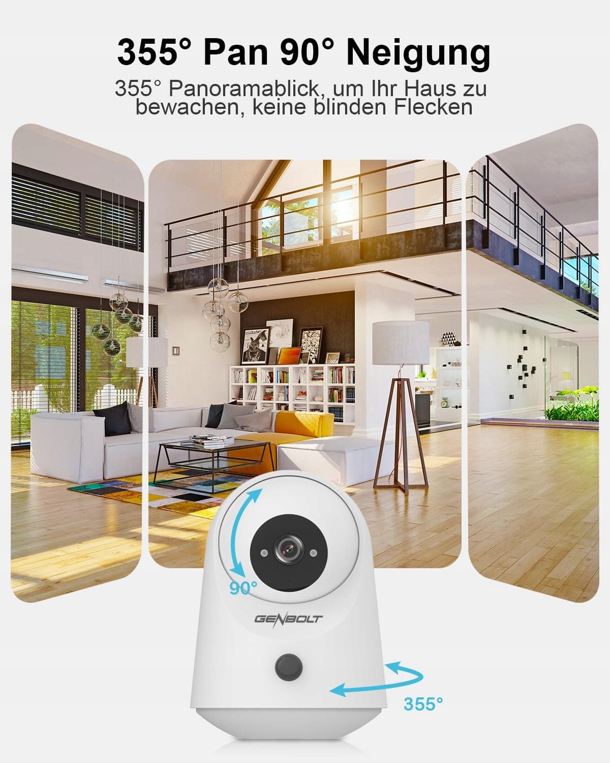 【Jakość obrazu HD F1.6】Kamera wewnętrzna GENBOLT wyposażona jest w obiektyw o przysłonie F1.6 i obsługuje rozdzielczość wysokiej definicji 2K (2304x1296P), która w połączeniu z technologią podczerwieni rejestruje wyraźny obraz w dzień i w nocy. Obsługuje 4-krotny zoom obrazu na żywo bez utraty szczegółów.