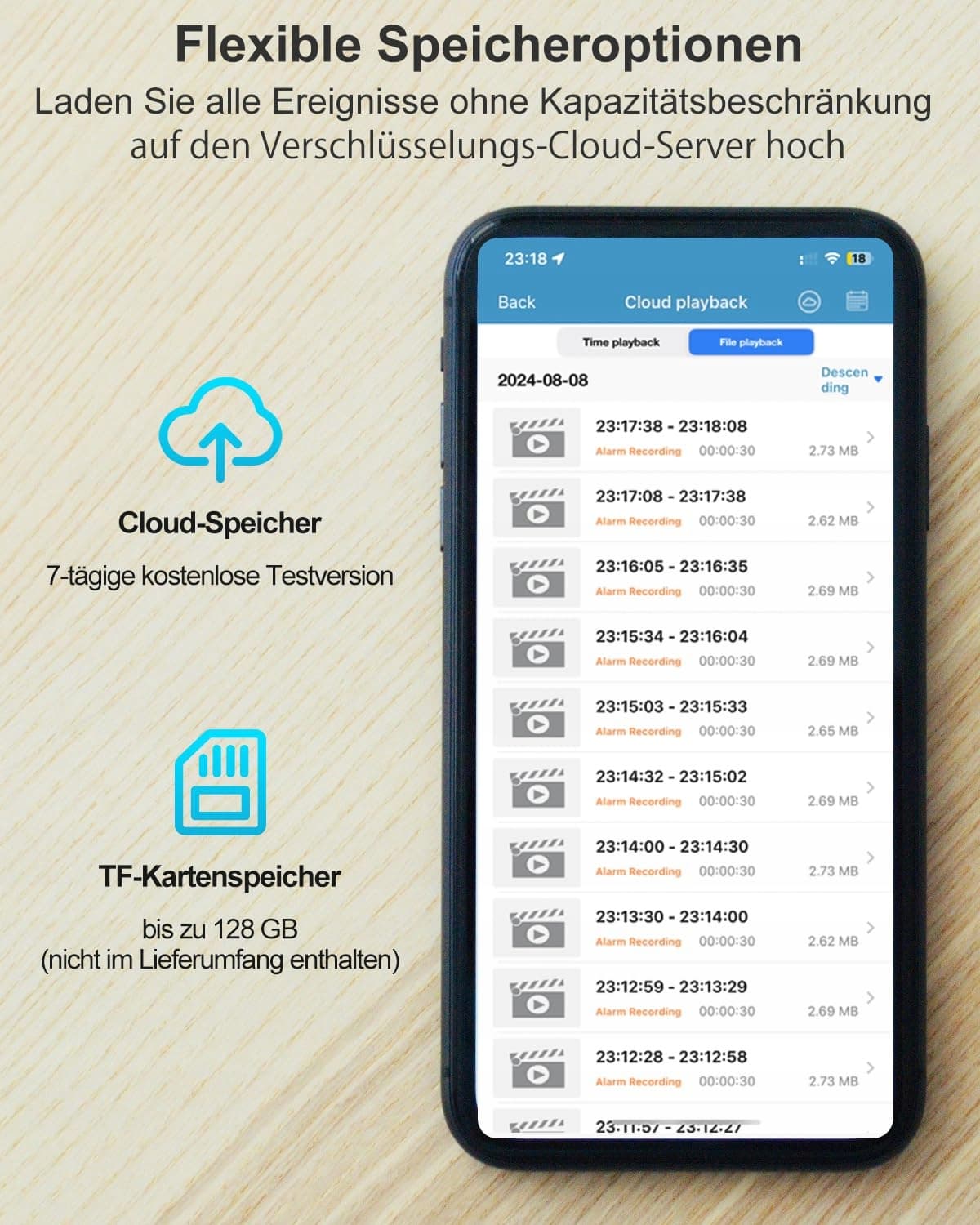 【Opcja przechowywania w chmurze i na karcie SD】 Kamera kopułkowa do użytku wewnętrznego obsługuje maksymalną kartę MicroSD o pojemności 128 GB (NIE JEST DOŁĄCZONA) oraz bezpłatny 7-dniowy okres próbny przechowywania w chmurze. Przesyłaj wszystkie zdarzenia na zaszyfrowany serwer i łatwo odtwarzaj je z aplikacji. 1. Brak ograniczeń pojemności, przechowuj według potrzeb; 2. Dane NIE mogą zostać skradzione ani uszkodzone. 3. Zapewnia szybkie przeglądanie i pobieranie. 4. Oglądaj nagrania nawet gdy kamera IP jest OFFLINE.