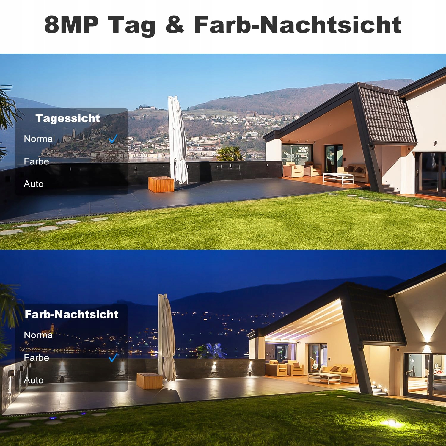 【150FT Kolorowe widzenie nocne, rozdzielczość 8MP UHD】Kamera monitoringu zewnętrznego WLAN z 12 reflektorami, umożliwia oglądanie kolorowego obrazu 4K nawet w ciemności. Do 40 metrów maksymalnego zasięgu widzenia nocnego z 8MP Full HD, możesz wszystko wyraźnie uchwycić, jak chcesz.