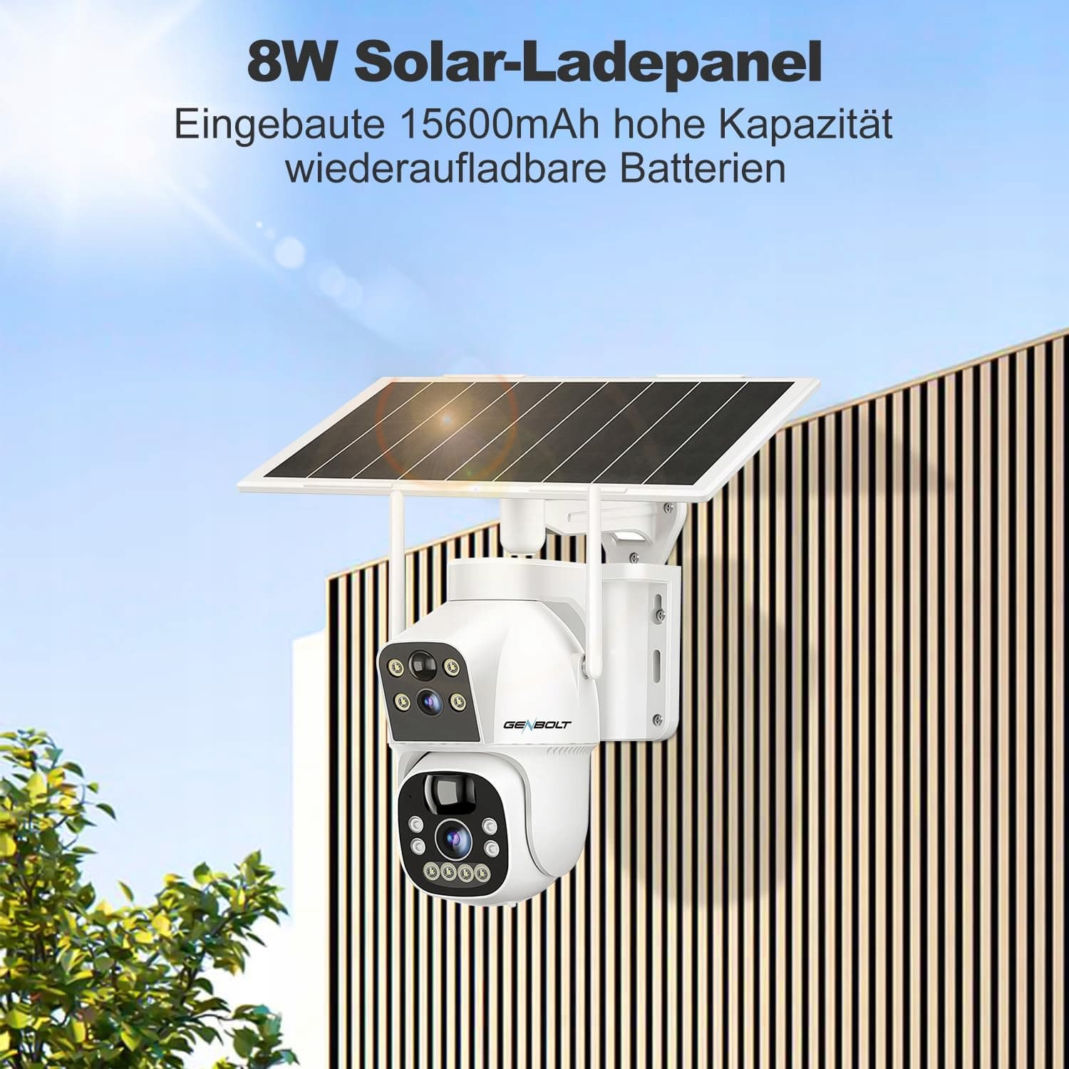GENBOLT Solarna kamera do monitoringu na zewnątrz WLAN bezprzewodowa, kamera IP do monitoringu na zewnątrz akumulator 8W 15600mAh WiFi kamera do monitoringu na zewnątrz, kamera CCTV na zewnątrz kamera bezpieczeństwa, detekcja PIR