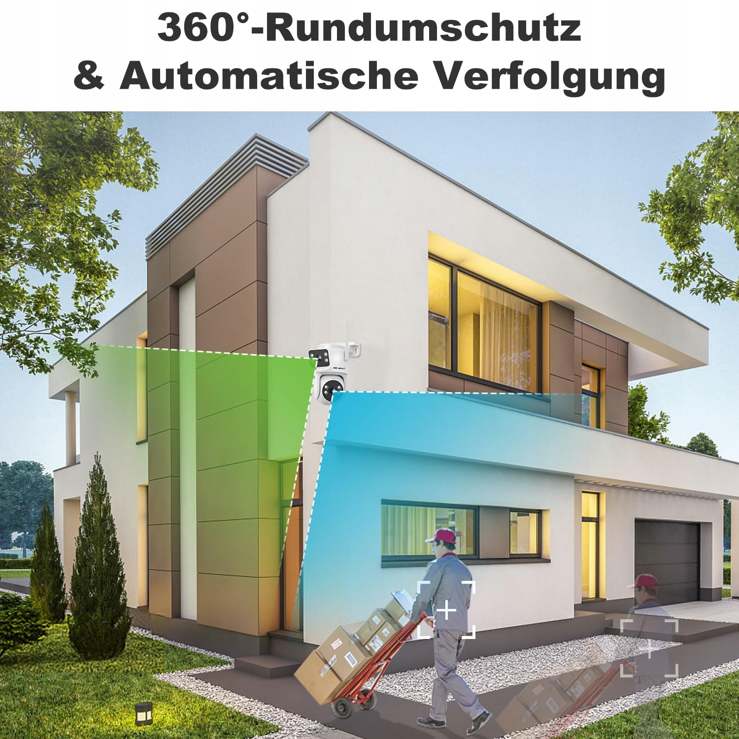GENBOLT WLAN Kamera monitorująca na zewnątrz, 2.4/5GHz WiFi Kamera monitorująca na zewnątrz z podwójnym obiektywem, CCTV IP Kamera bezpieczeństwa monitorująca na zewnątrz Kamera bezpieczeństwa z kolorowym trybem nocnym, wykrywanie humanoidalne