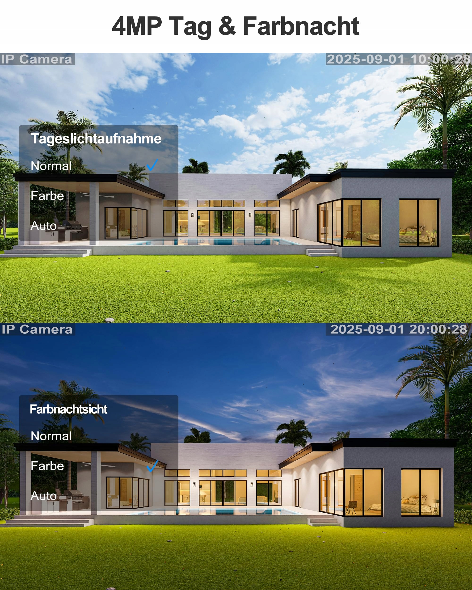 【Aktywny alarm, obrona świetlna】 Możesz indywidualnie ustawić każdy dźwięk alarmu, np. szczekanie psa. Po uruchomieniu alarmu natychmiast włączają się reflektory, aby odstraszyć intruzów. W międzyczasie system monitoringu kamery LTE na zewnątrz wysyła alarm i zdjęcia w czasie rzeczywistym na Twój telefon komórkowy/email/komputer.