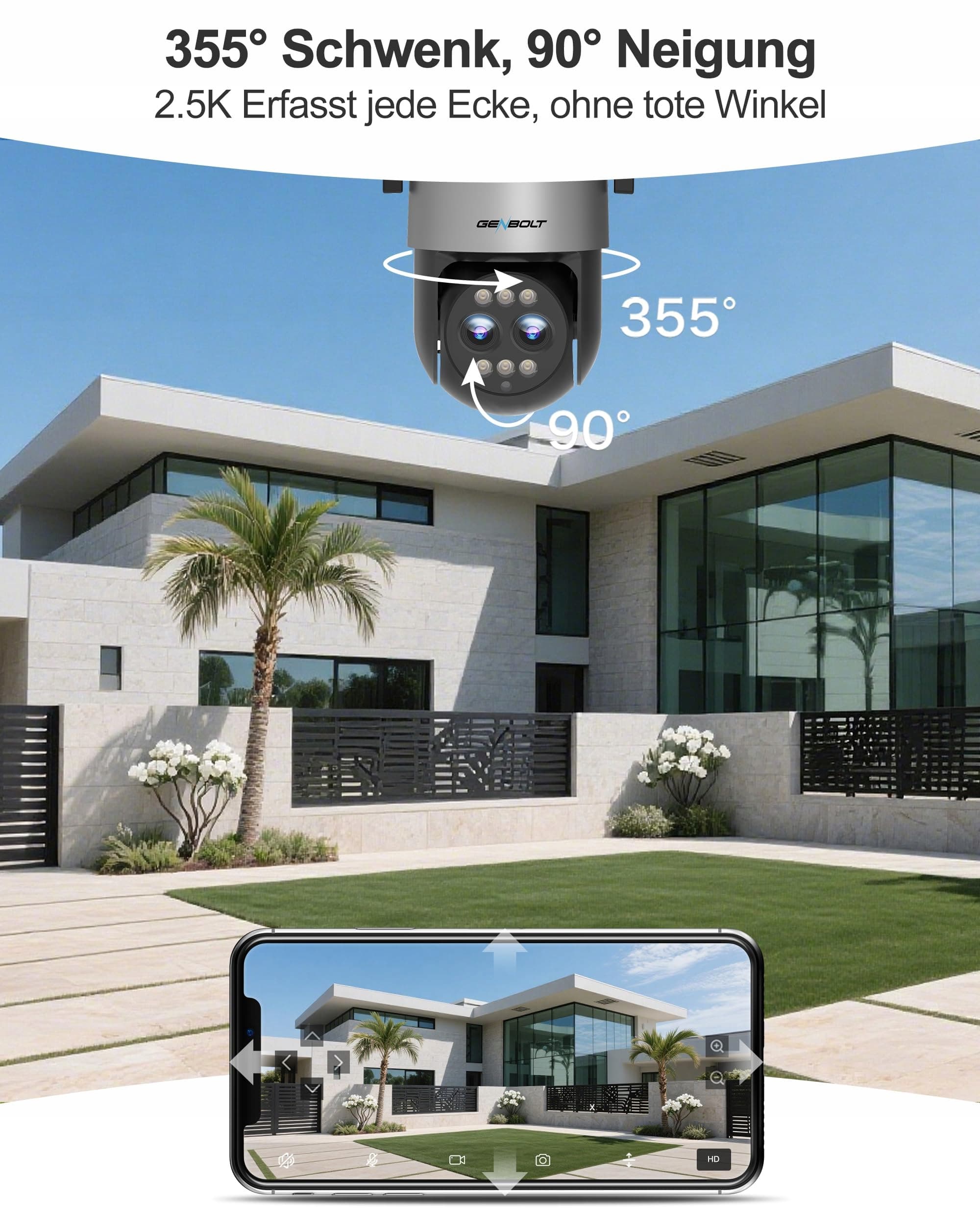 GENBOLT 2,5K PTZ WiFi Kamera do monitoringu na zewnątrz z PoE, kamera CCTV z podwójnym obiektywem do monitoringu domowego z 10X hybrydowym zoomem, kamera IP z kolorowym trybem nocnym 4MP, automatyczne śledzenie (2,4&5GHz)