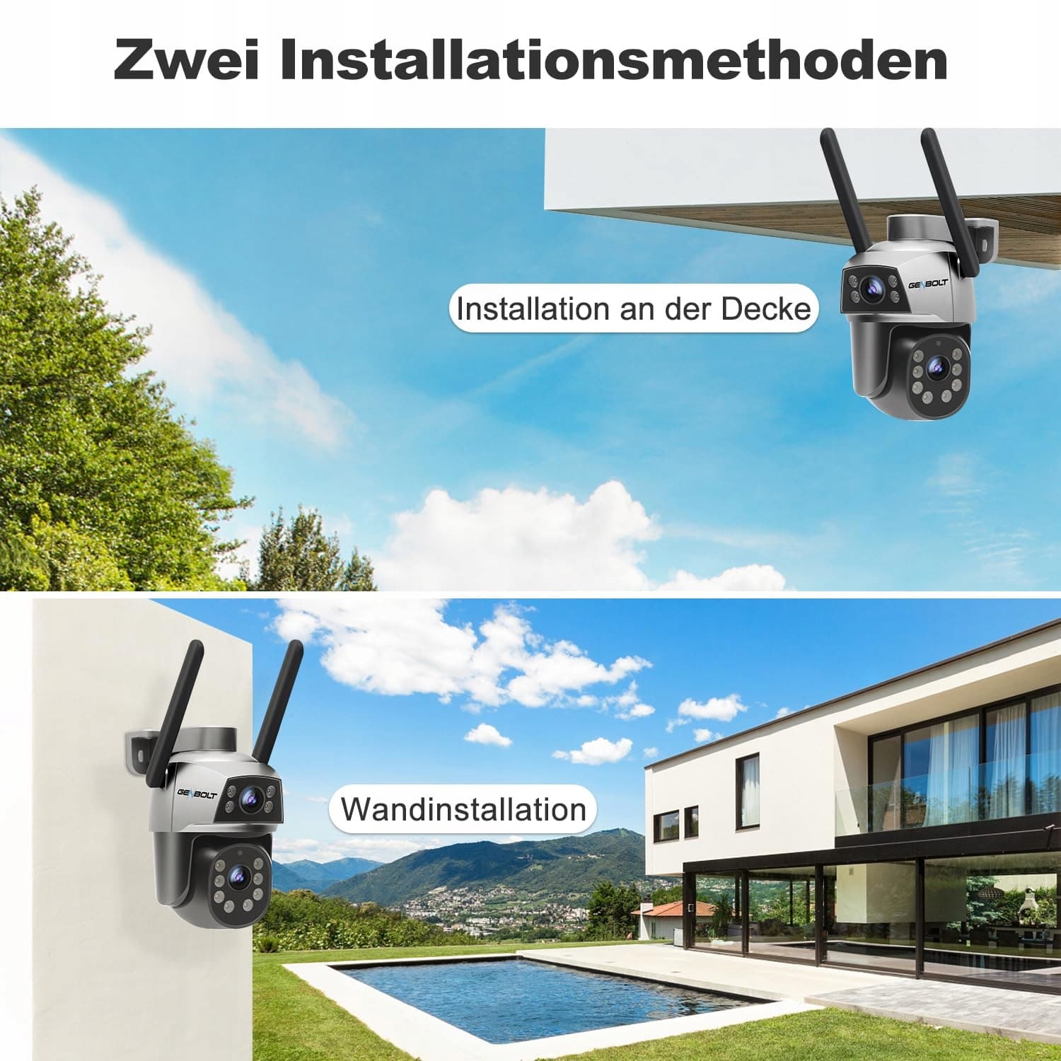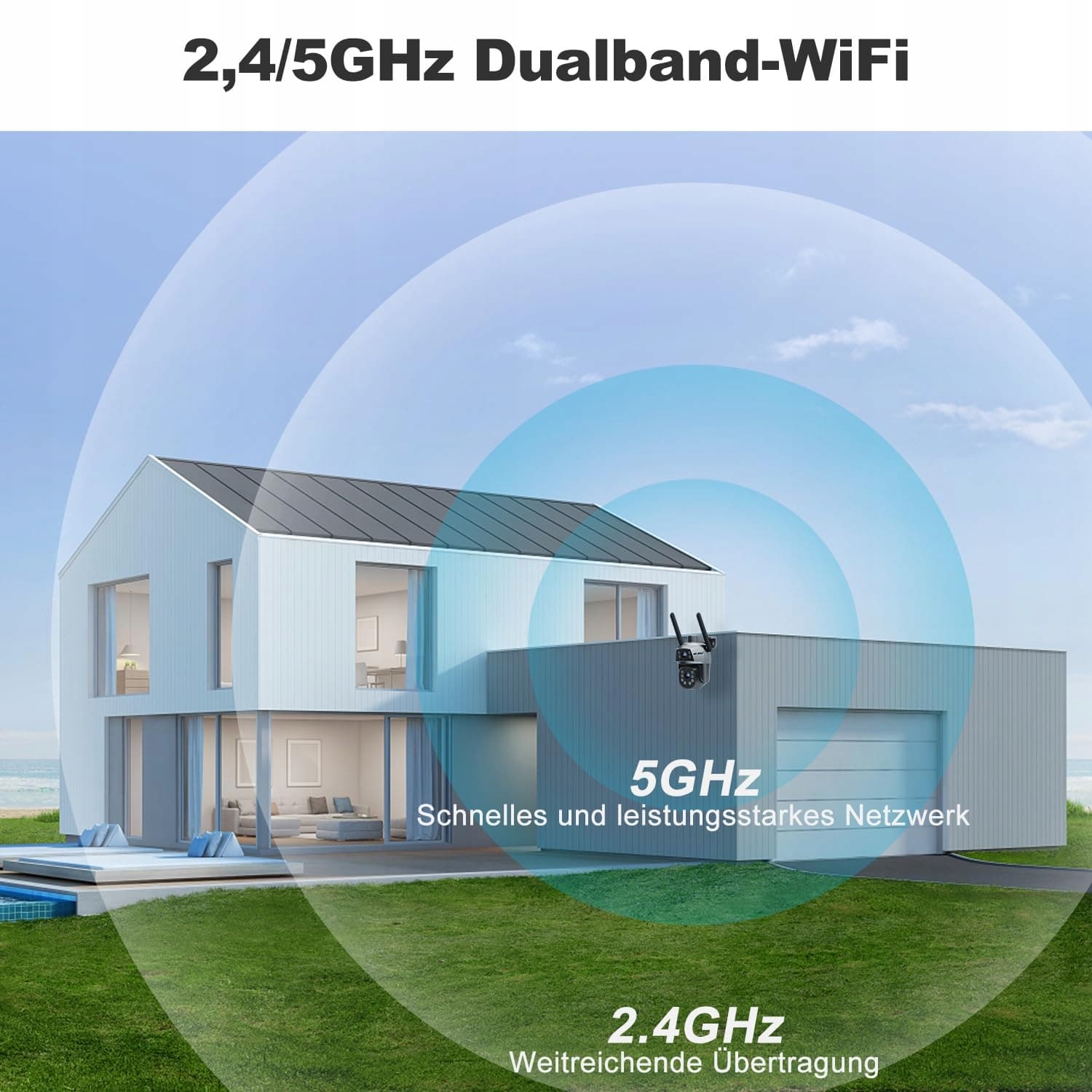 【Stabilne Wi-Fi 2,4/5 GHz】Kamera GENBOLT WLAN na zewnątrz obsługuje dwupasmowe Wi-Fi 2,4 i 5 GHz, oferując szybkie połączenie (5 GHz) oraz stabilne (2,4 GHz). Nie musisz martwić się skomplikowanymi ustawieniami routera.