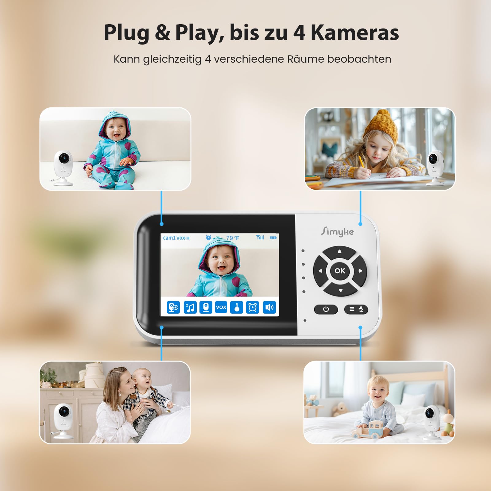 Generisch Simyke Babyfon, monitor dla niemowląt w trybie podwójnym z aplikacją 1080p i wyświetlaczem 2,8 cala, wykrywanie dźwięku i ruchu oparte na AI, 10 godz. transmisji, zasięg 457 m, tryb nocny, komunikacja dwukierunkowa