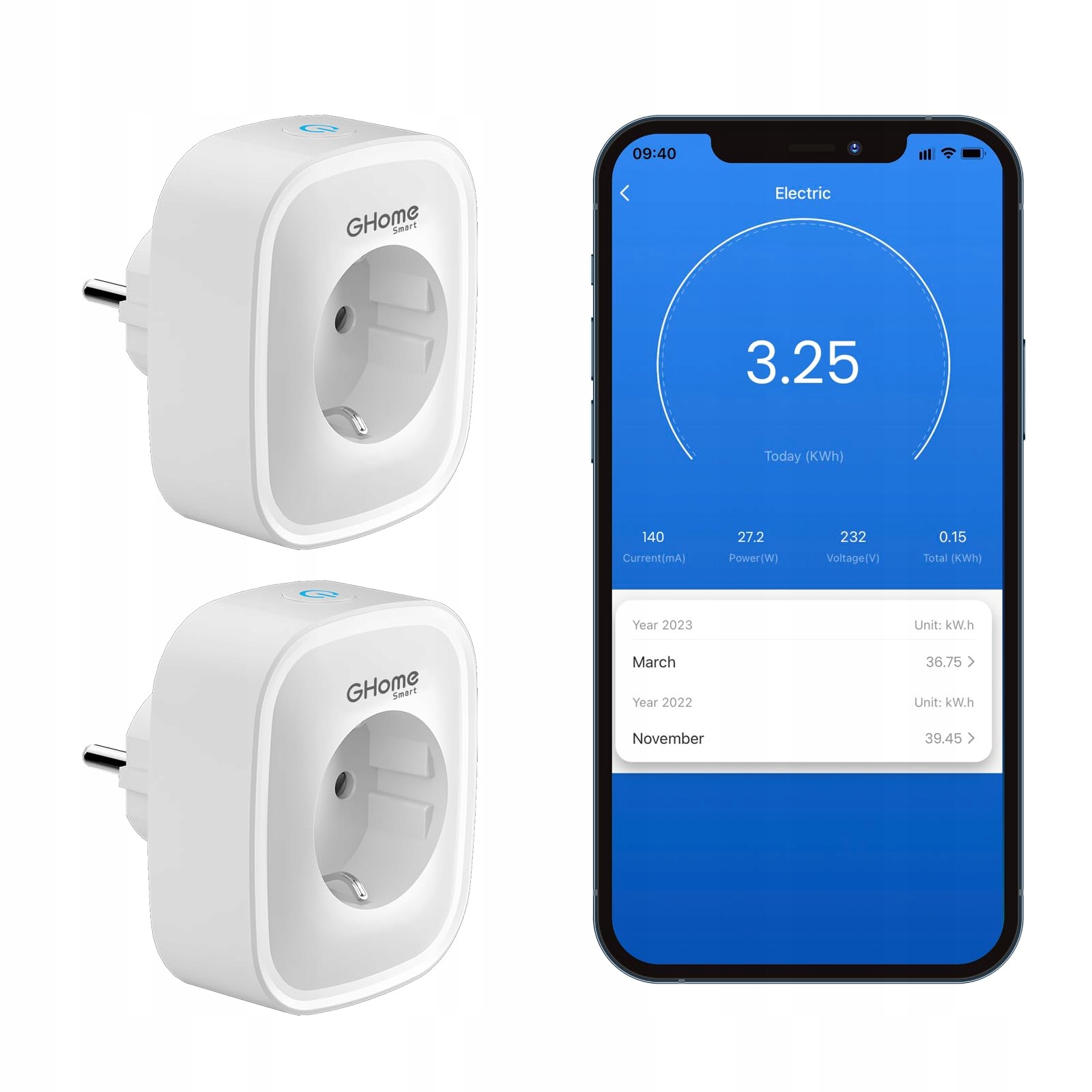 GHOME Smart Gniazdko 16A z Pomiarem Energii, Alexa & Google Home