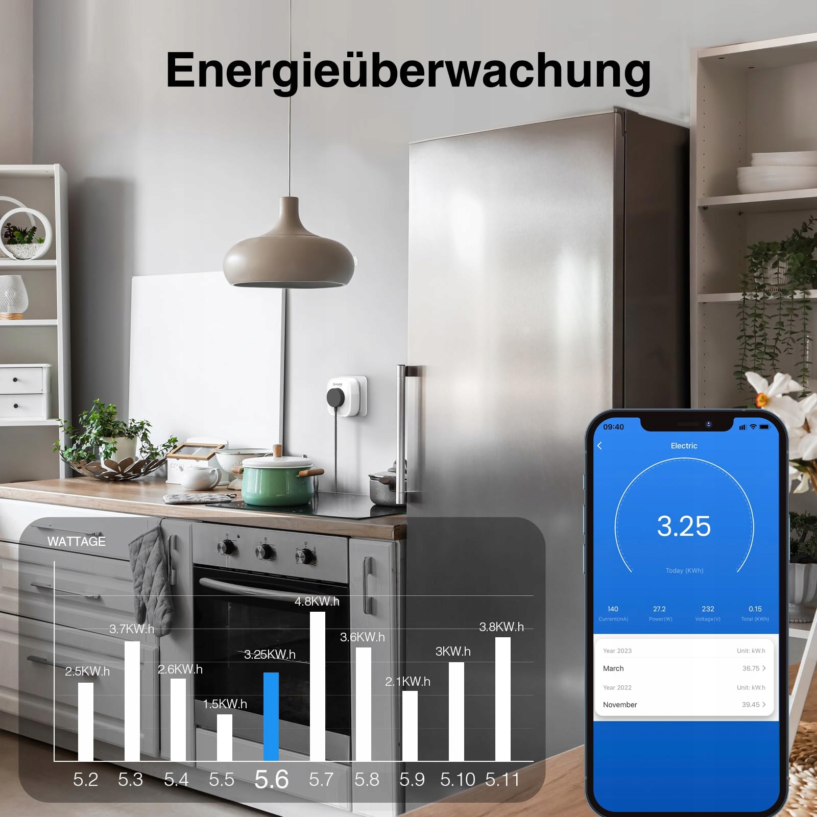 ⚡【Pomiar energii】Dzięki gniazdku SP1 Smart WiFi możesz monitorować zużycie energii podłączonych urządzeń domowych za pomocą aplikacji mobilnej, aby uzyskać szczegółowy wgląd w zużycie energii urządzeń i pomóc w oszczędzaniu energii.