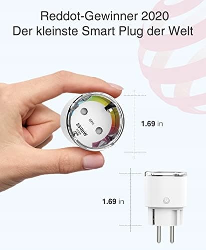Red Dot Award Smart gniazdko: Gniazdko WLAN jest najmniejszym i najbardziej atrakcyjnym urządzeniem tego typu na świecie. Zdobyło nagrodę Red Dot Design Award w Niemczech. Maksymalne obciążenie 2500W. Tuya nie może być używana do aktualizacji oprogramowania! (Ta zaktualizowana wersja EP2 z chipem Realtek nie obsługuje już flashowania Tasmota.)