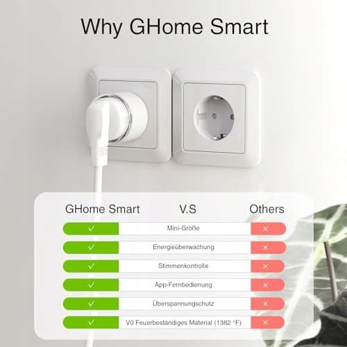 GHome Smart WLAN gniazdko, Najmniejsze gniazdko WiFi akcesoria Smart Plug aplikacja zdalnego sterowania, Pomiar zużycia energii sterowanie głosowe, harmonogram, działa z Alexa Google Home, 2 paczki, tylko 2,4 GHz WiFi