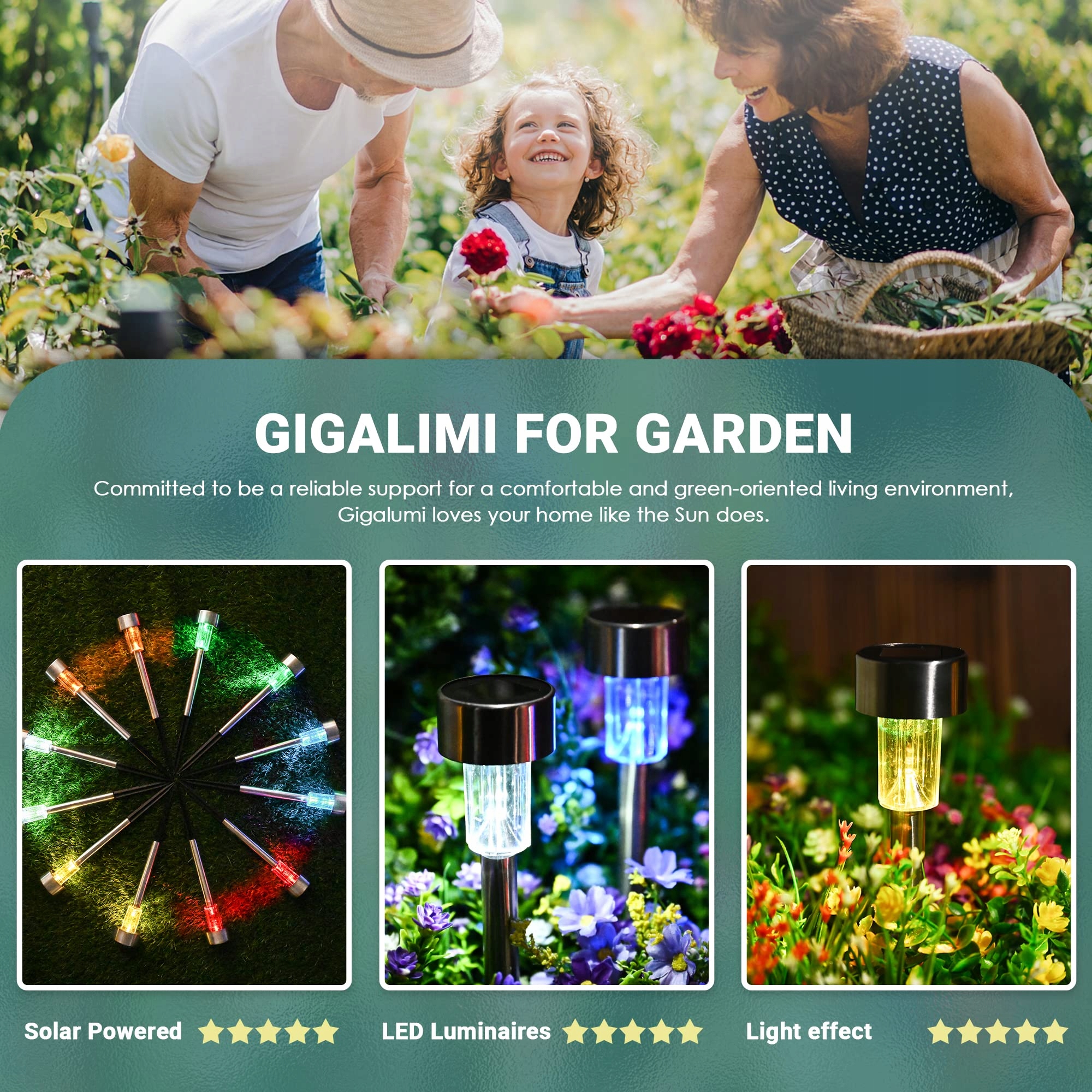 GIGALUMI LED Lampy Solarne Ogród 12 Sztuk Wodoodporne 6 Kolorów | Premium Supply