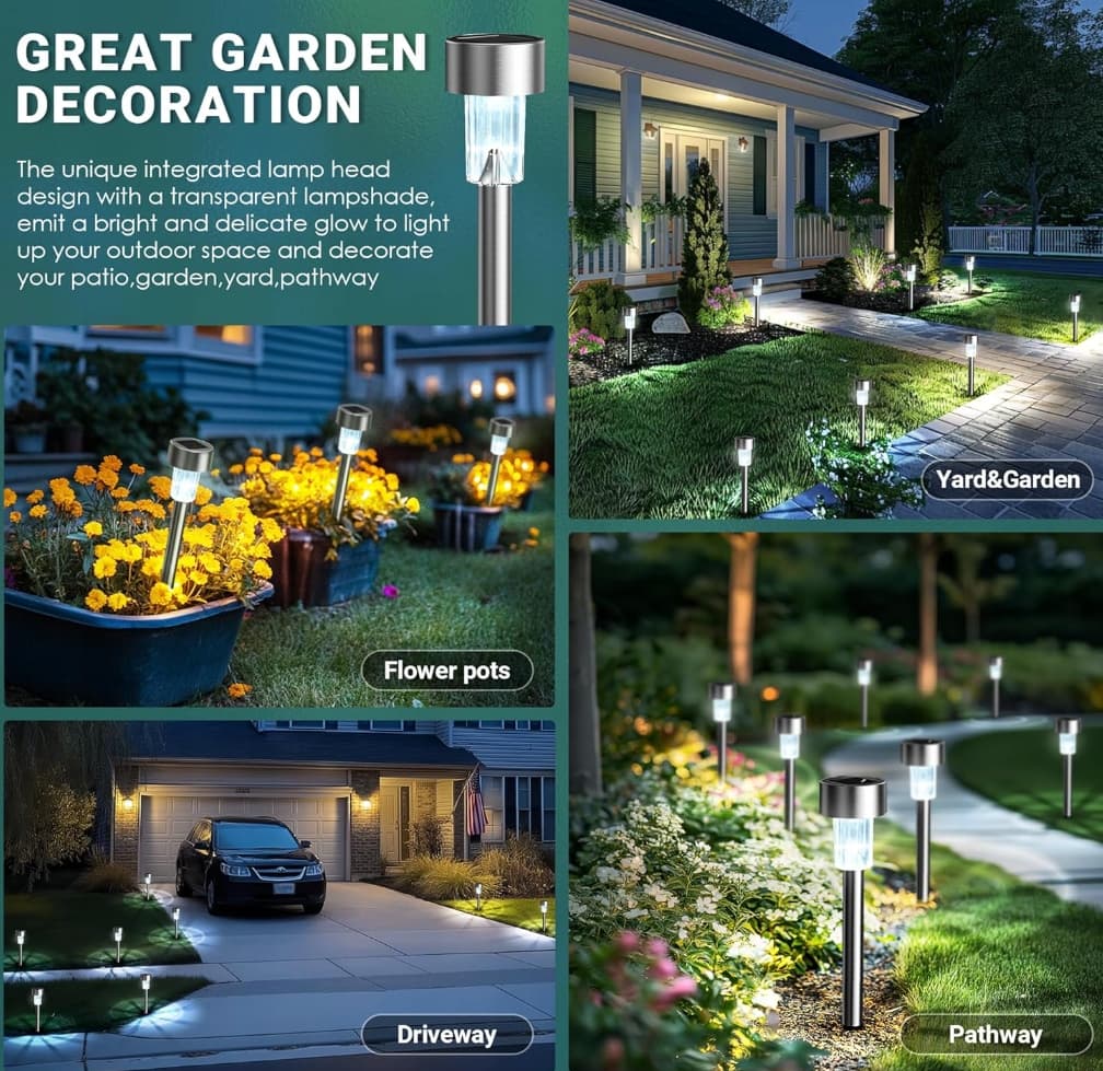 GIGALUMI lampy solarne na zewnątrz, LED lampy solarne do ogrodu, 12 sztuk ze stali nierdzewnej wodoodporne oświetlenie ogrodowe na zewnątrz, taras, trawnik, ścieżki (Białe)
