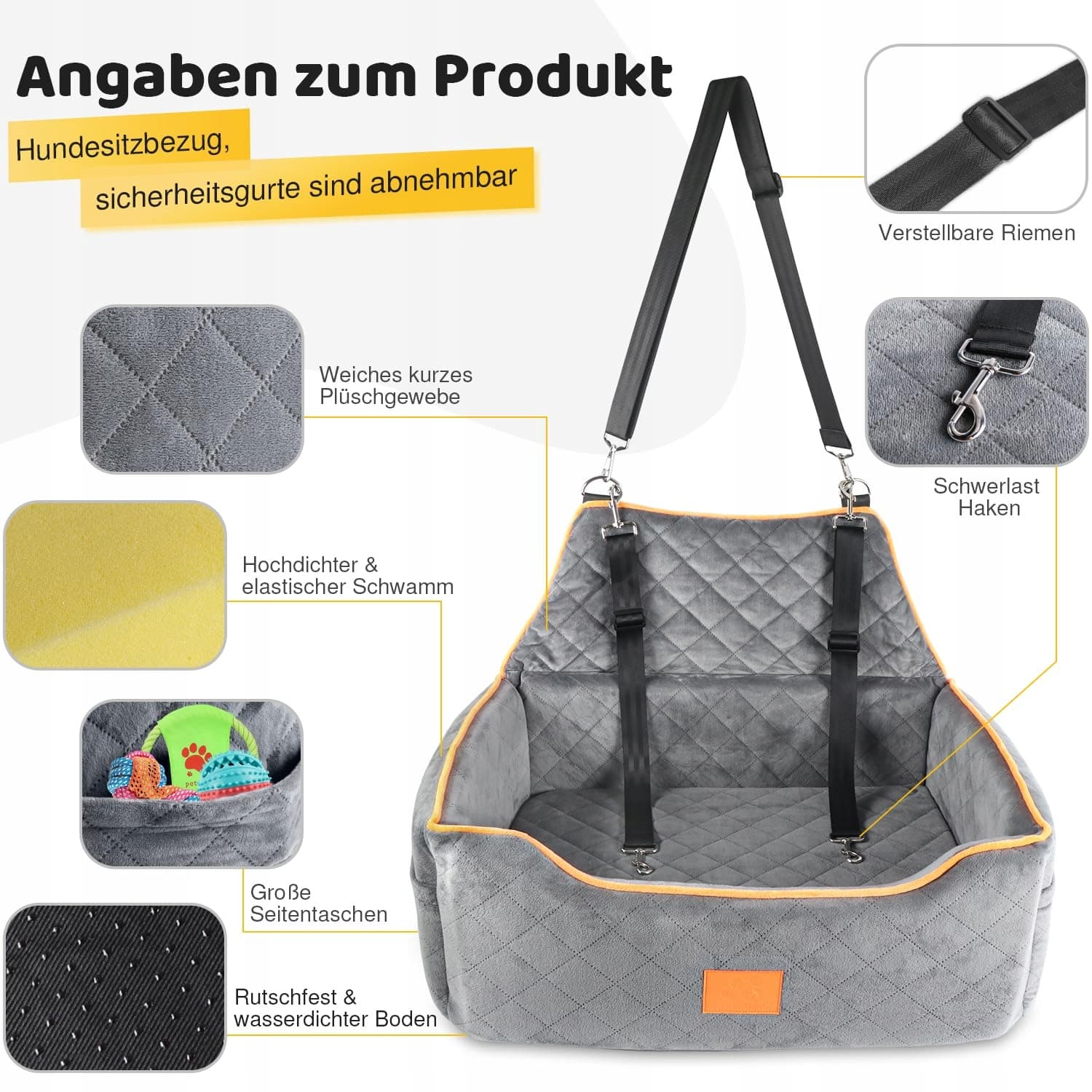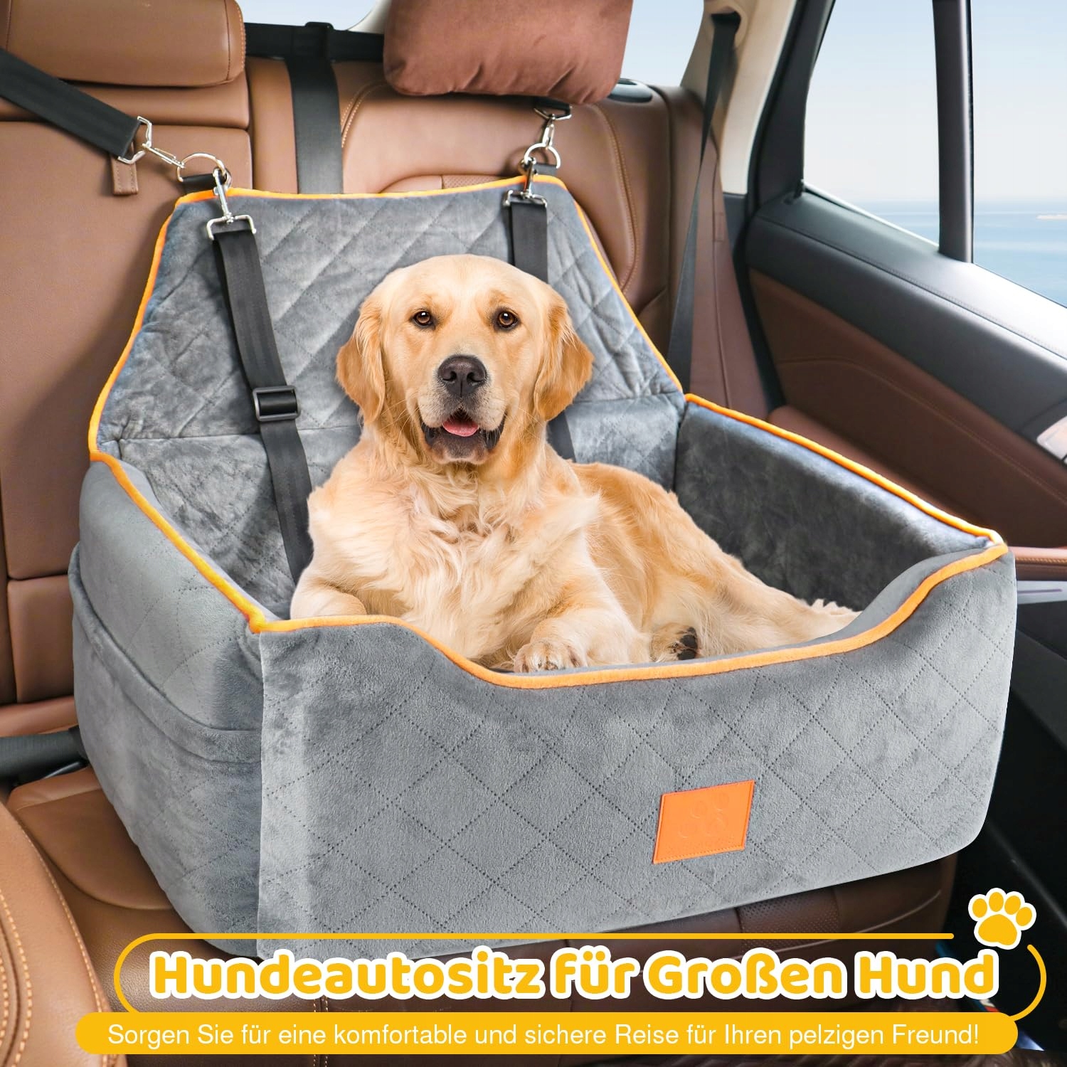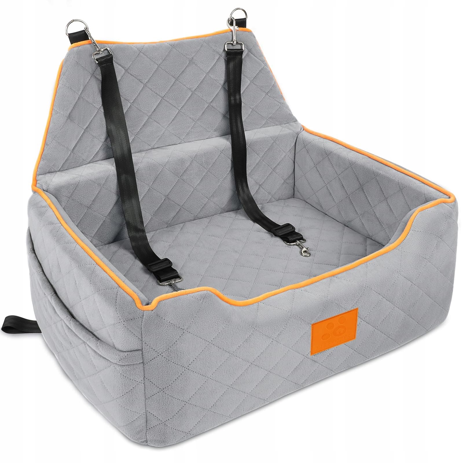 Bezpieczeństwo fotelika samochodowego dla psa: Te duże foteliki samochodowe dla psów są wykonane z wysokiej jakości, krótkiego pluszowego materiału, który zapewnia ciepło, komfort i trwałość. Są również odporne na zużycie i gryzienie. Wnętrze jest wypełnione gąbką o wysokiej gęstości dla dodatkowego komfortu. Antypoślizgowe dno oraz solidny pas bezpieczeństwa lub uprząż zapewniają bezpieczeństwo Twojego zwierzaka. W bocznych kieszeniach można wygodnie przechowywać przekąski dla psa i inne rzeczy.