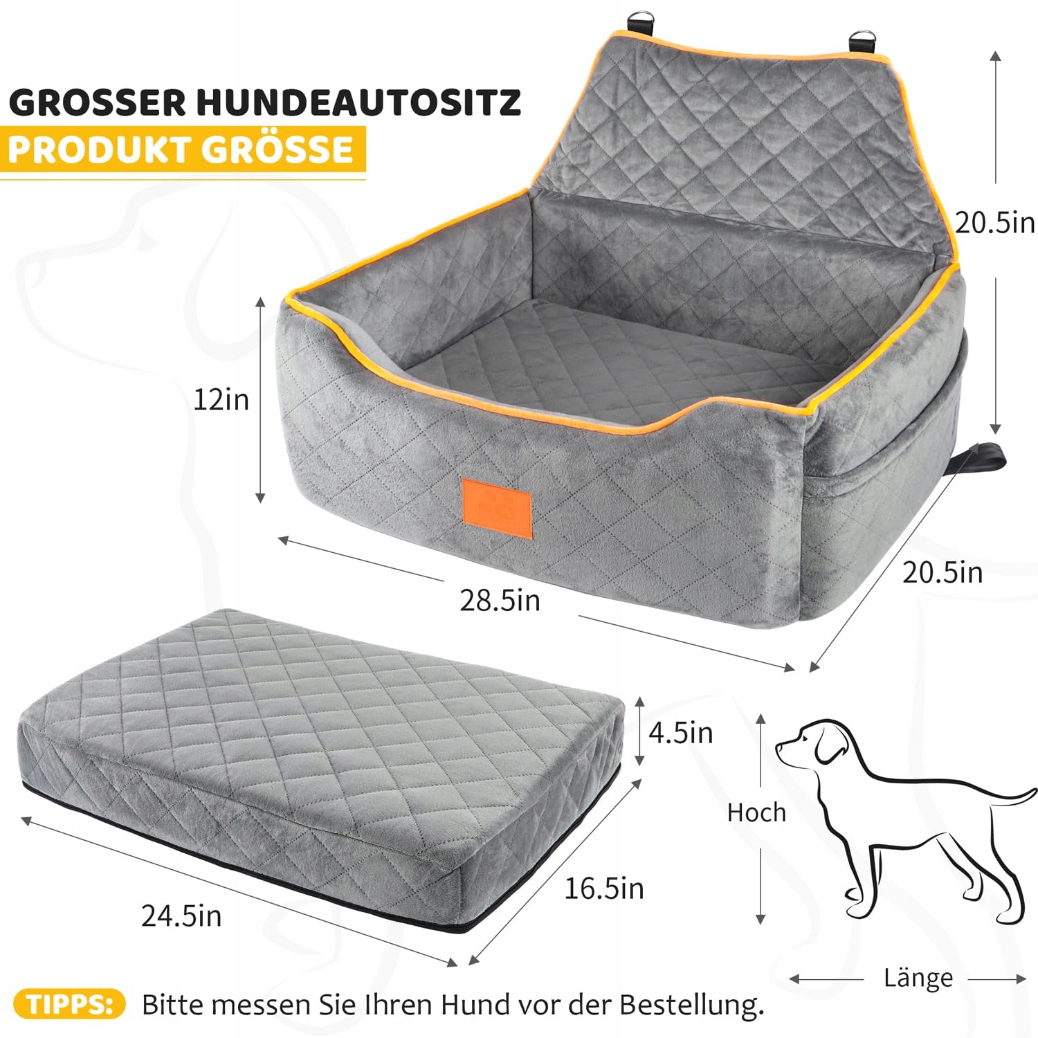 GL GLENSLAVE Siedzenie Dla Psów Duże Średnie Zdejmowane Pranie Szare Z Poduszką I Kieszeniami