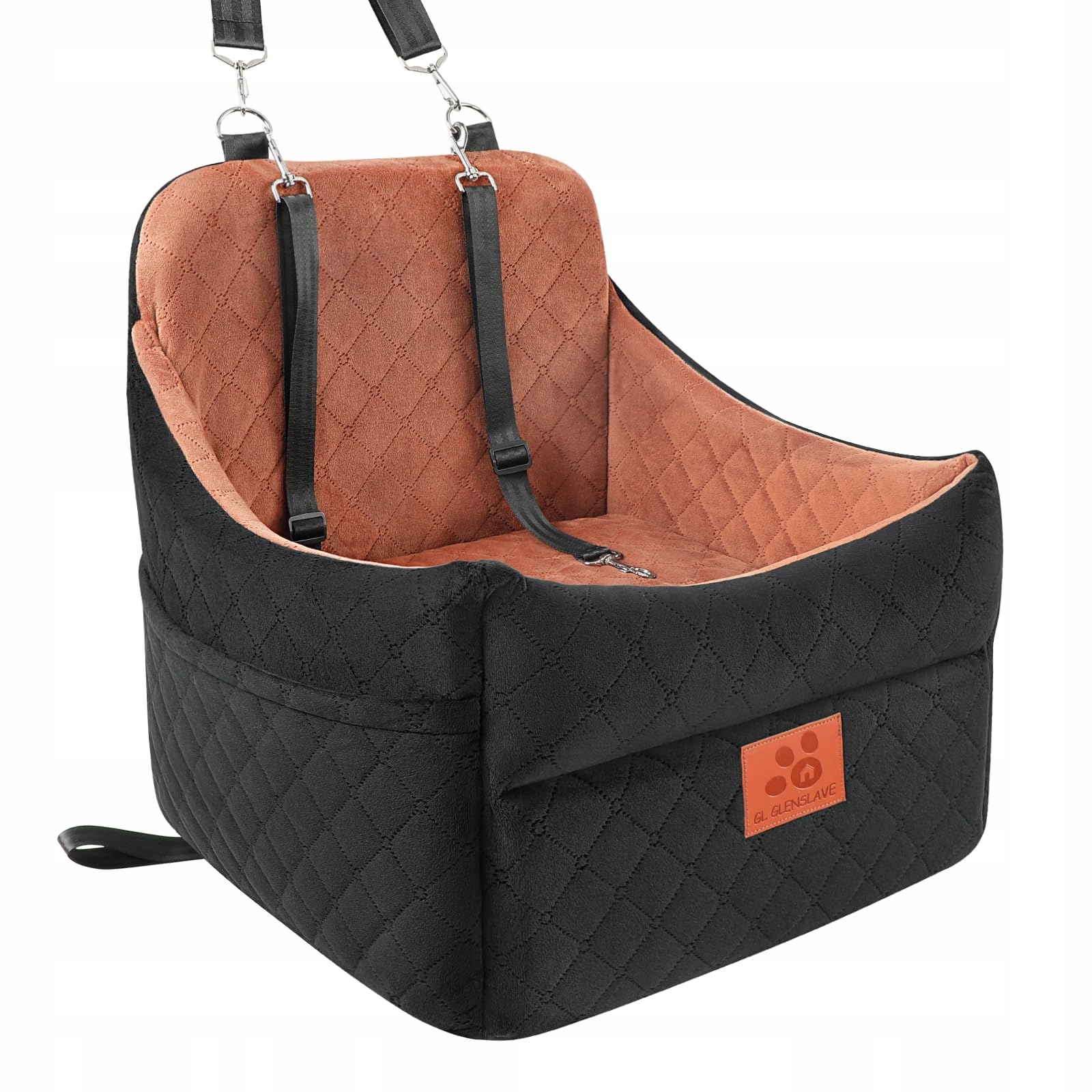 GL GLENSLAVE Fotelik samochodowy dla małych/średnich psów, fotelik samochodowy dla psów z grubym wypełnieniem do 35 funtów, zdejmowany, pralny fotelik dla zwierząt domowych (czarny/brązowy)