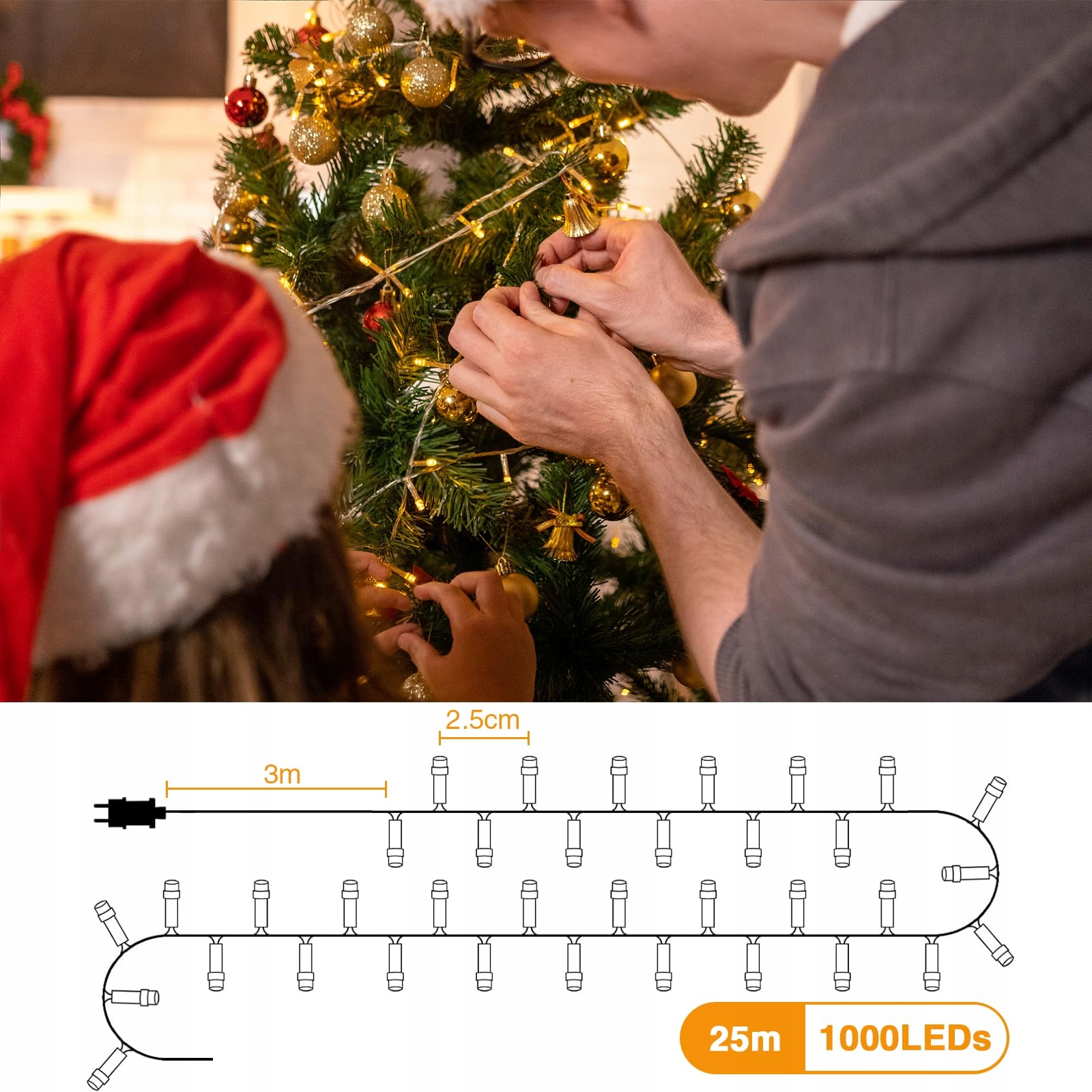🎄[Romantyczna i ciepła atmosfera]: LED 25M lampki z ciepłymi białymi 1000LED są idealne na różne okazje, takie jak dekoracja na Boże Narodzenie, imprezy, wesela, urodziny, tarasy, restauracje, hotele, kluby, centra handlowe, koncerty, pokazy mody lub ozdabianie ogrodu, korytarza i pokoju.