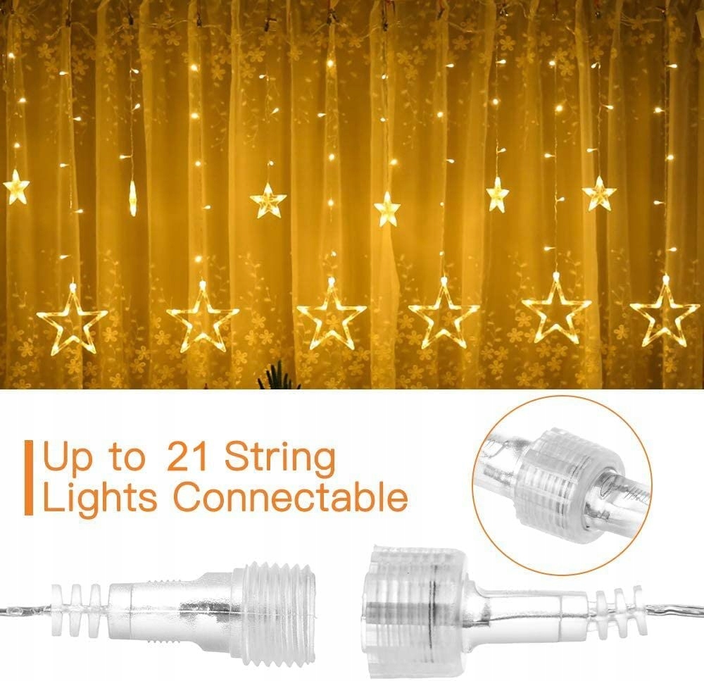 🎄[Łańcuch świetlny z gwiazdami do użytku na zewnątrz]: 12 gwiazd 138LEDs Lichtervorhang, rozszerzalny do 14 sztuk od końca do końca, aby dostosować się do Twoich potrzeb oświetleniowych na większą odległość. Każde światło świąteczne ma połączenie od końca do końca, co umożliwia łatwe podłączenie innych 12 gwiazd 138LEDs Lichtervorhang. Dodatkowo, 3-metrowy dodatkowy kabel przedłużający rozwiązuje problemy z okablowaniem.