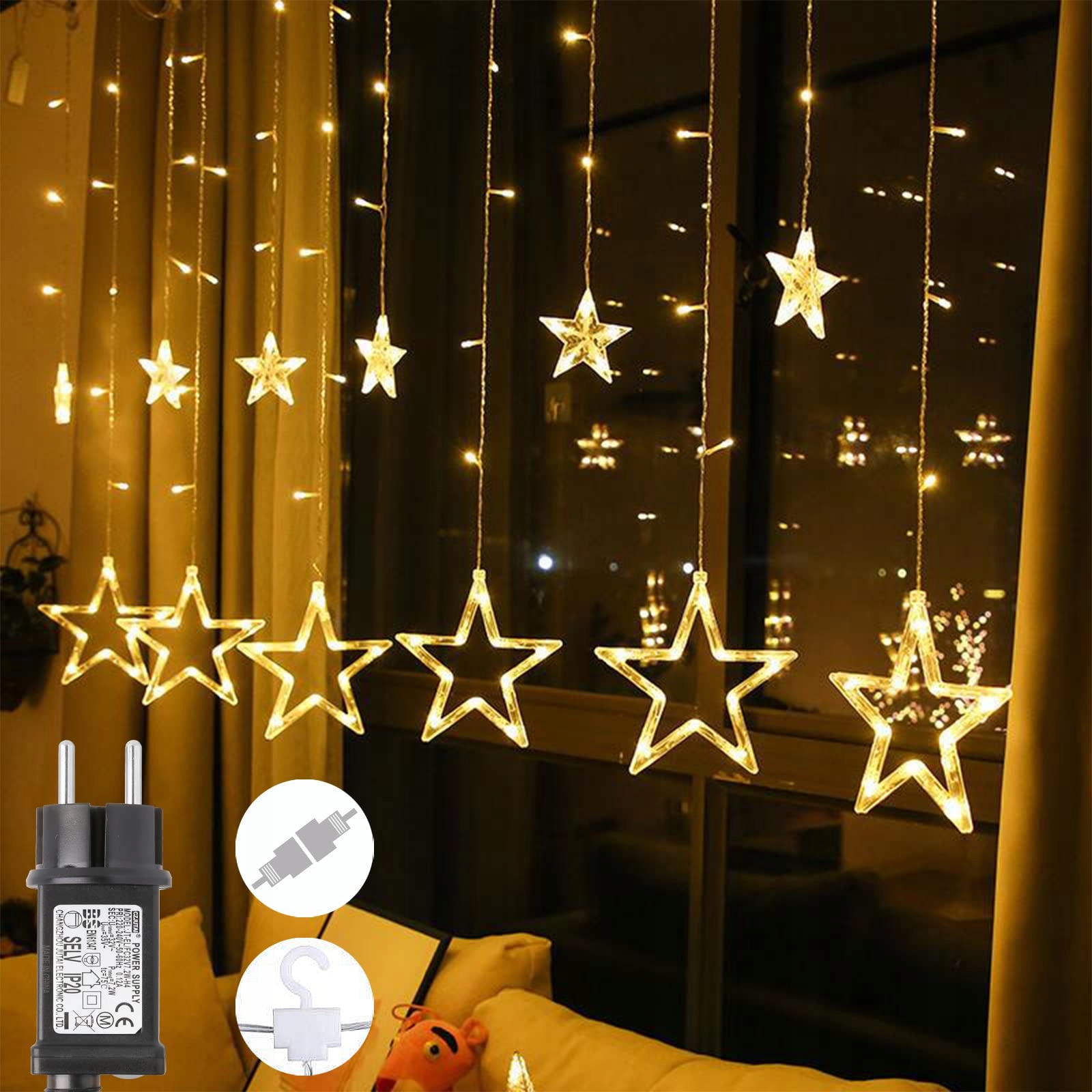GlobaLink Lichterkette Sterne erweiterbar, 12 Sterne 138 LEDs Lichtervorhang Weihnachtsbeleuchtung Innen mit Haken 8 Modi Wasserdicht IP44 für Innen und Außen Kinderzimmer Fenster Weihnachten Deko