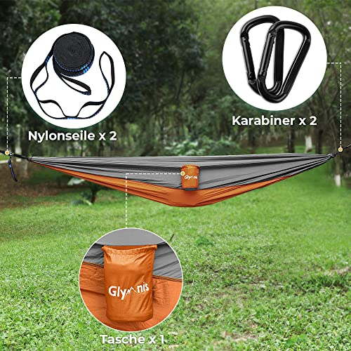 GLYMNIS Hamak Ultralekki Outdoor Podróżny z Linami i Karabińczykami Udźwig do 300 kg