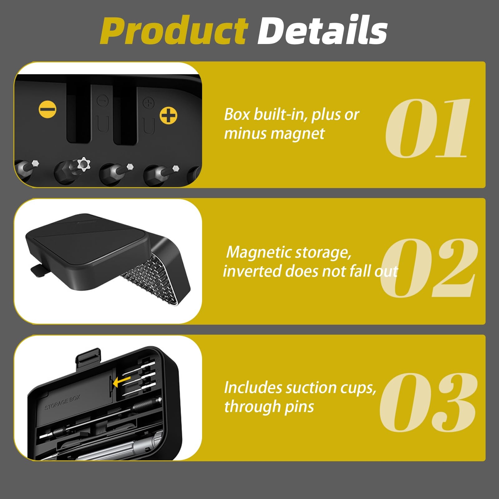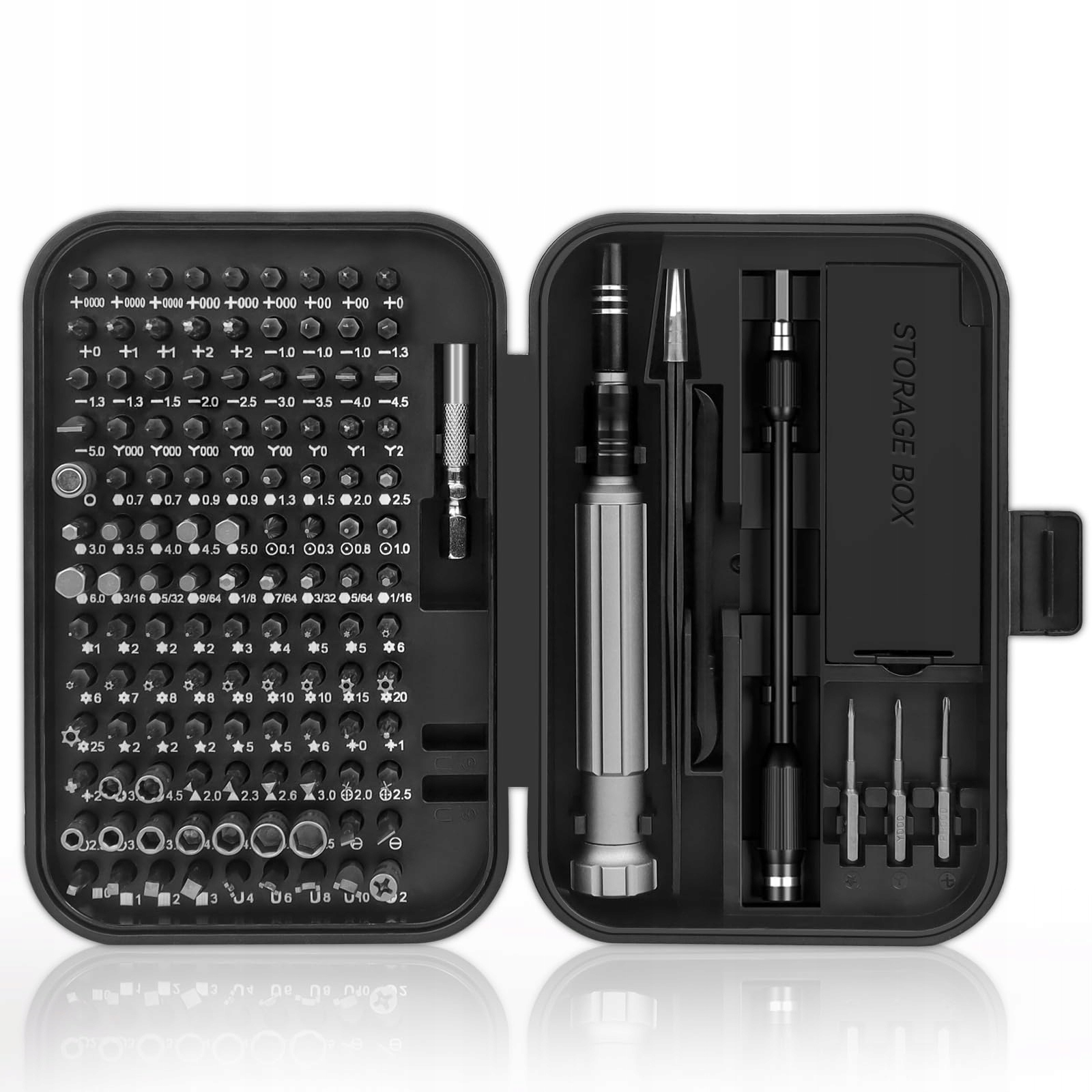 ŁATWY DO NOSZENIA: Wszystkie narzędzia są przechowywane w pudełku, akcesoria nie wypadają łatwo, są łatwe do schowania i znalezienia. Śruby również po długim użytkowaniu nie są łatwe do zużycia. Każda końcówka precyzyjna jest oznaczona rozmiarem dla łatwej identyfikacji.