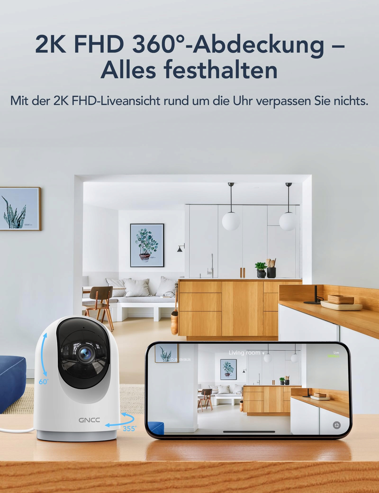 GNCC 2K 360° WiFi Kamera Wewnętrzna dla Zwierząt i Dzieci | Premium Supply