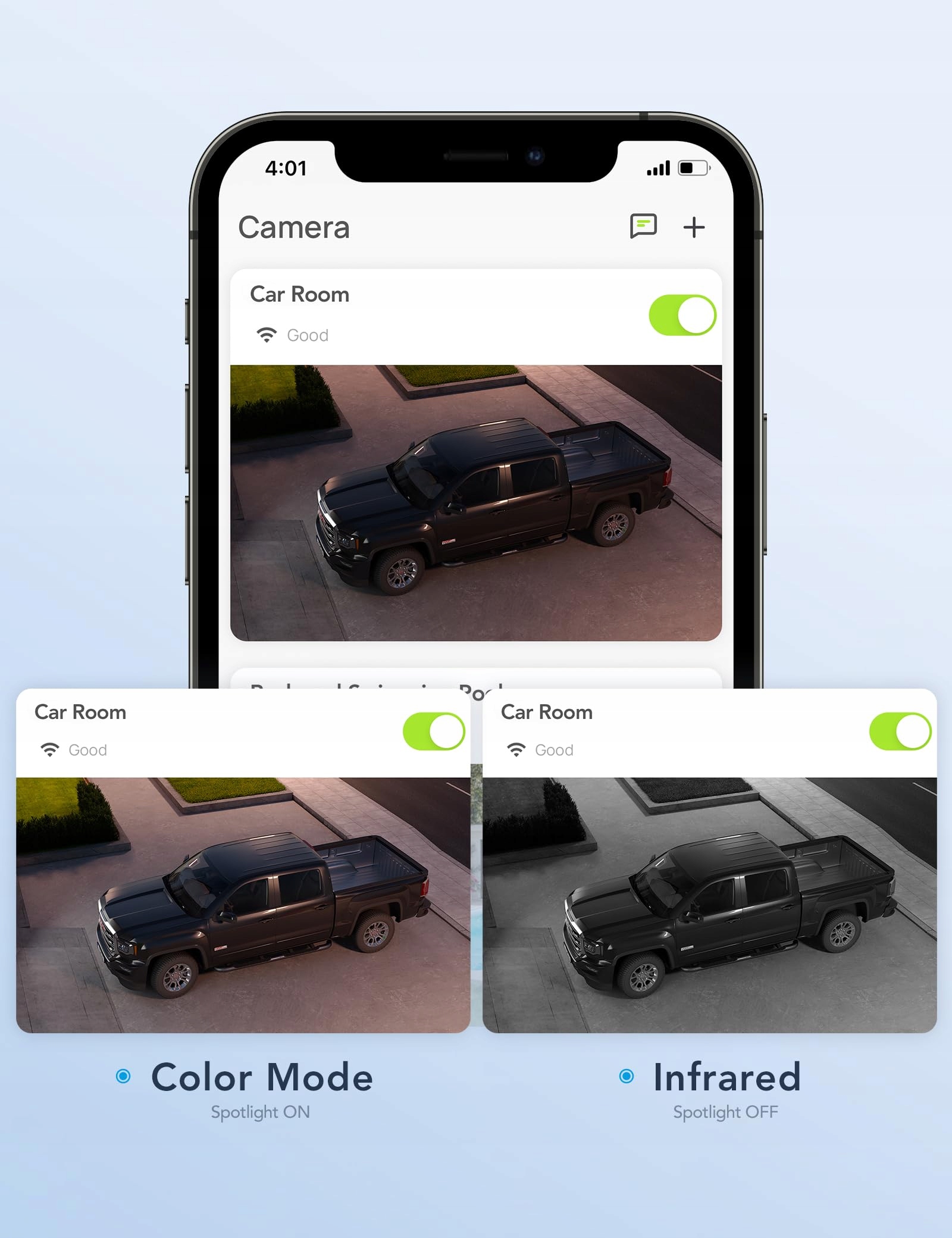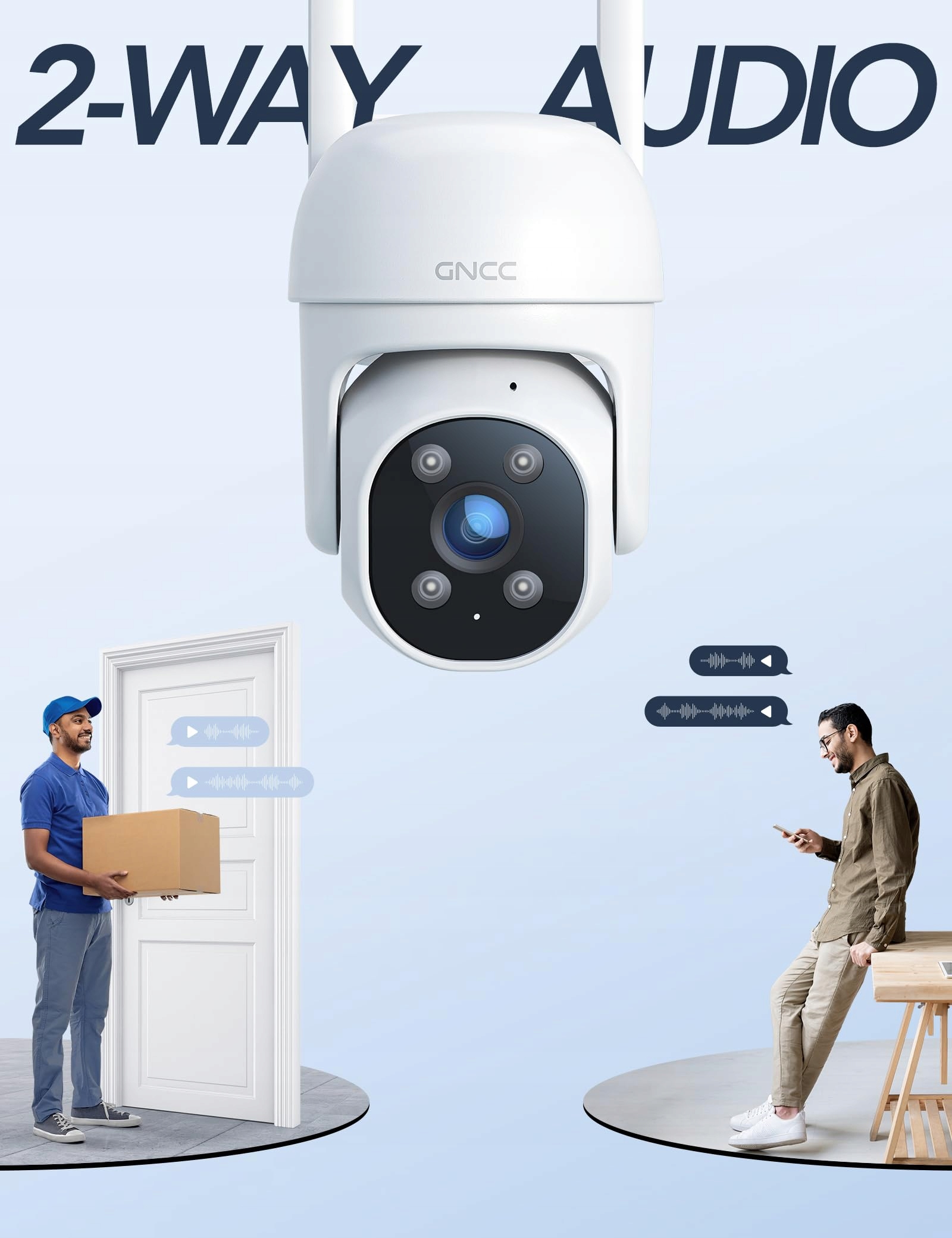 odtwarzanie w dowolnym momencie i nagrywanie 24/7: GNCC kamera monitorująca na zewnątrz WLAN wspiera ciągłe nagrywanie przez całą dobę, a dzięki tej kamerze GNCC do monitoringu zewnętrznego możesz w dowolnym momencie odtwarzać ważne chwile, nie pomijając istotnych szczegółów. (Nie wspiera sieci 5G WLAN)