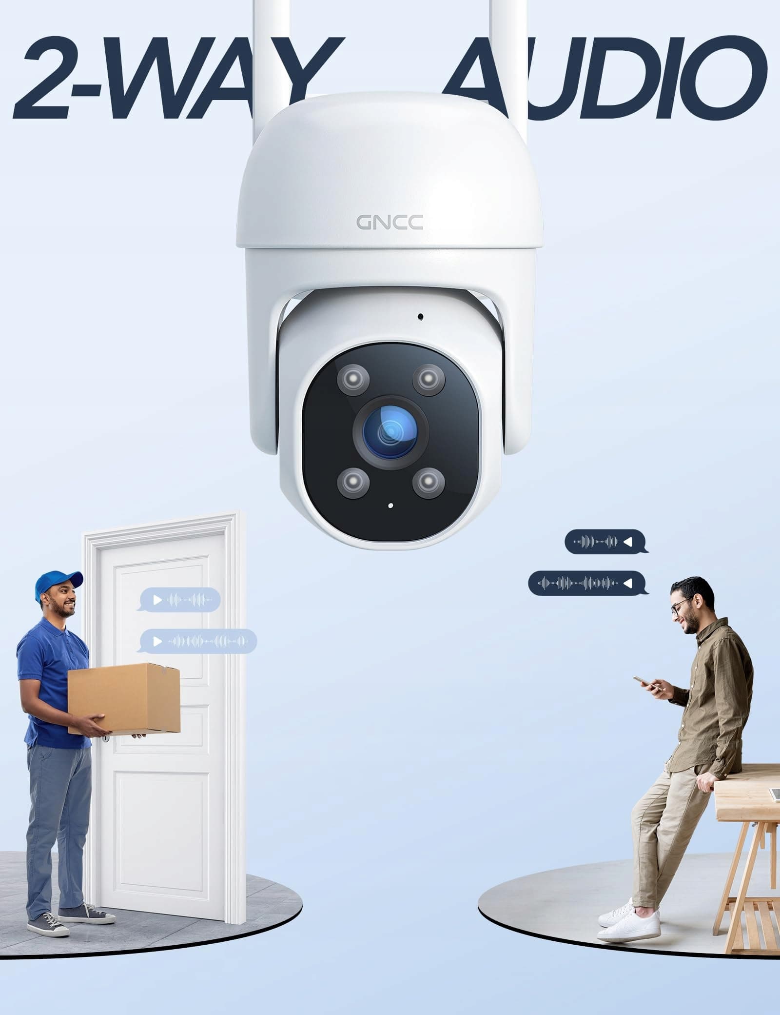 GNCC Kamera monitorująca na zewnątrz, kamera WLAN do monitoringu zewnętrznego, widok 360°, kamera 1080P z dwukierunkowym audio, kolorowym trybem nocnym, nagrywaniem 24/7, współpracuje z Alexa i Google, 2,4 GHz, IP65, GK2