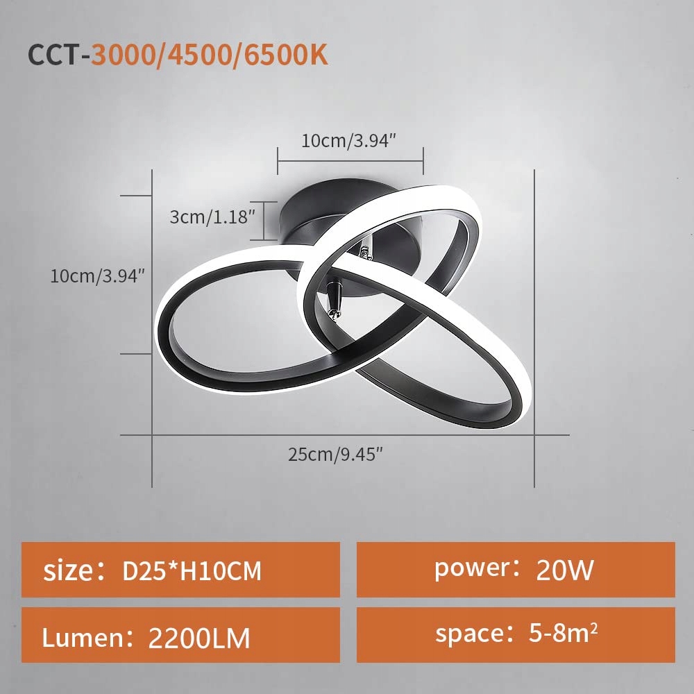 �Rozmiar lampy sufitowej LED: 25*25*10cm, kształt kwiatu, powierzchnia oświetlenia 5-10 metrów kwadratowych. 20W 2200 lumenów, a napięcie wynosi 220V.