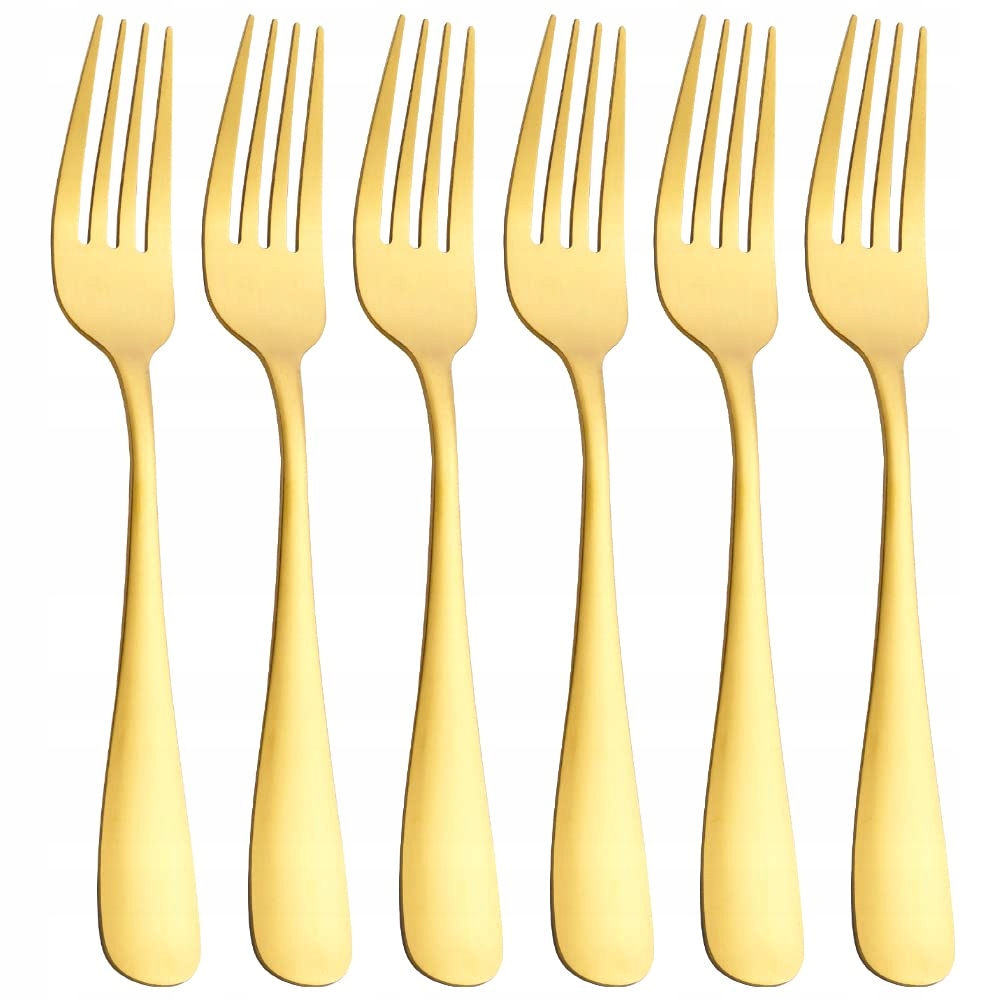Matowe złote wykończenie – Nasz zestaw 6 widelców do dań głównych posiada unikalne matowe złote wykończenie, które dodaje Twojemu stołowi odrobinę wyrafinowania. Ponadto nadają się do mycia w zmywarce, co ułatwia czyszczenie.