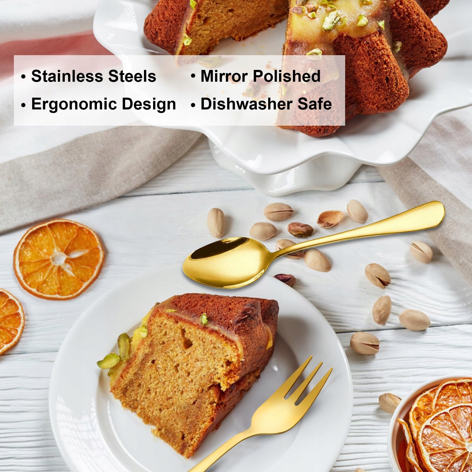 Zestaw złotych widelczyków do ciasta i łyżeczek do kawy Gohytal, 24 sztuki Małe łyżeczki i widelczyki do zestawu na ślub, urodziny, Boże Narodzenie, nadające się do mycia w zmywarce