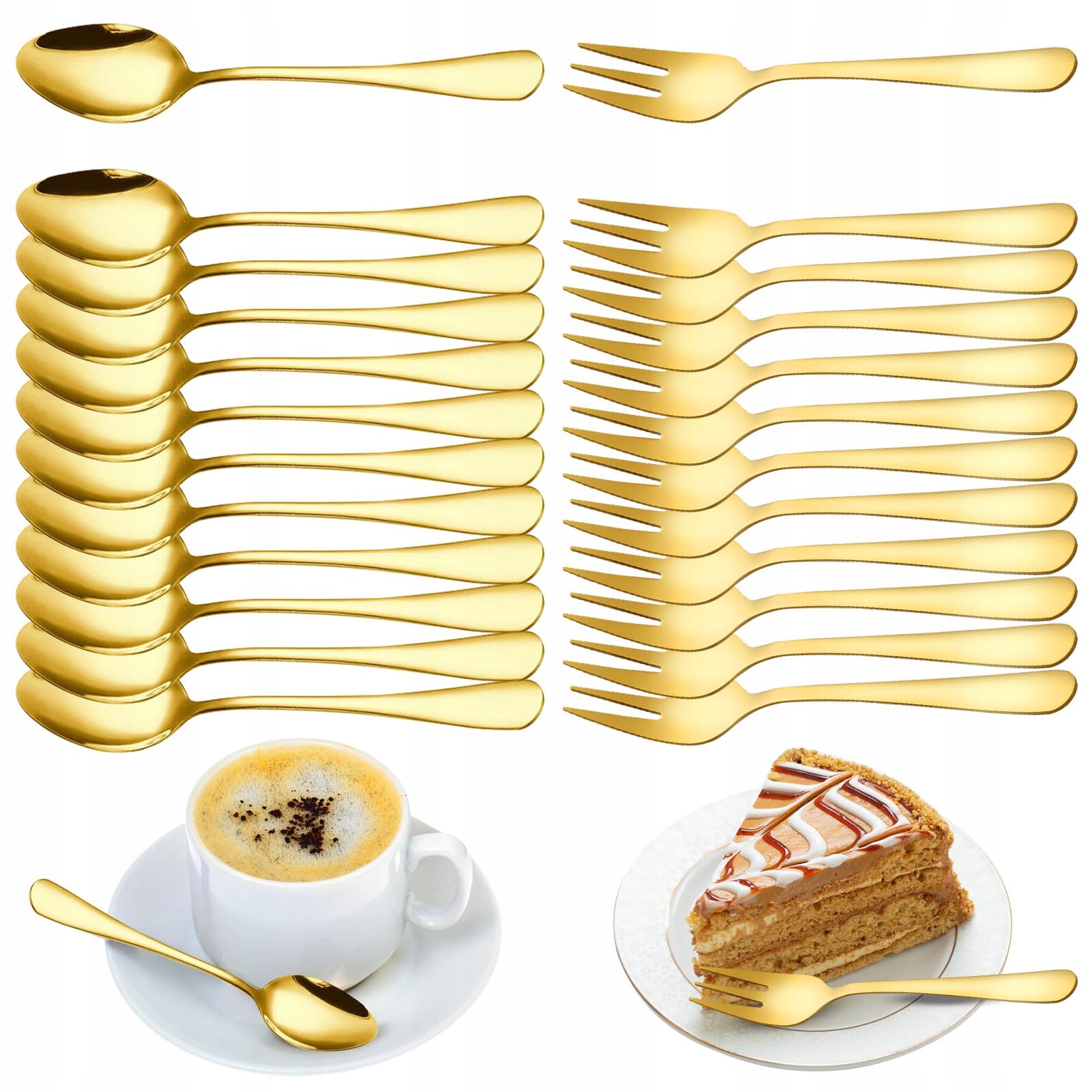GOHYTAL Zestaw Złotych Łyżeczek i Widelińków 24 Sztuki Na Wesele i Święta