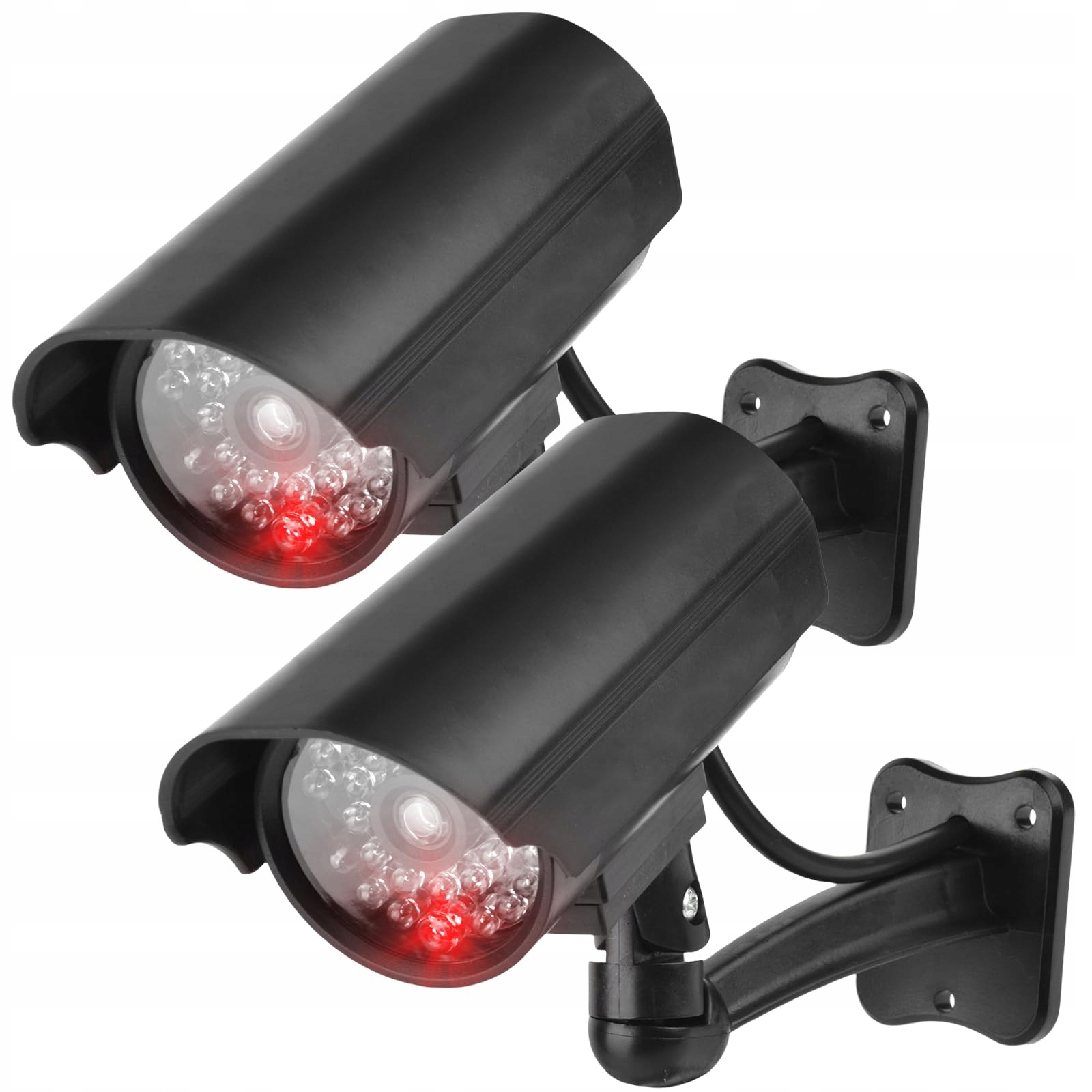 GOMETY 2 sztuki atrap kamery na zewnątrz, fałszywa kamera bezpieczeństwa z migającą czerwoną diodą LED, atrapa kamery monitoringu CCTV na zewnątrz, fałszywa kamera bezpieczeństwa do użytku wewnętrznego i zewnętrznego czarna