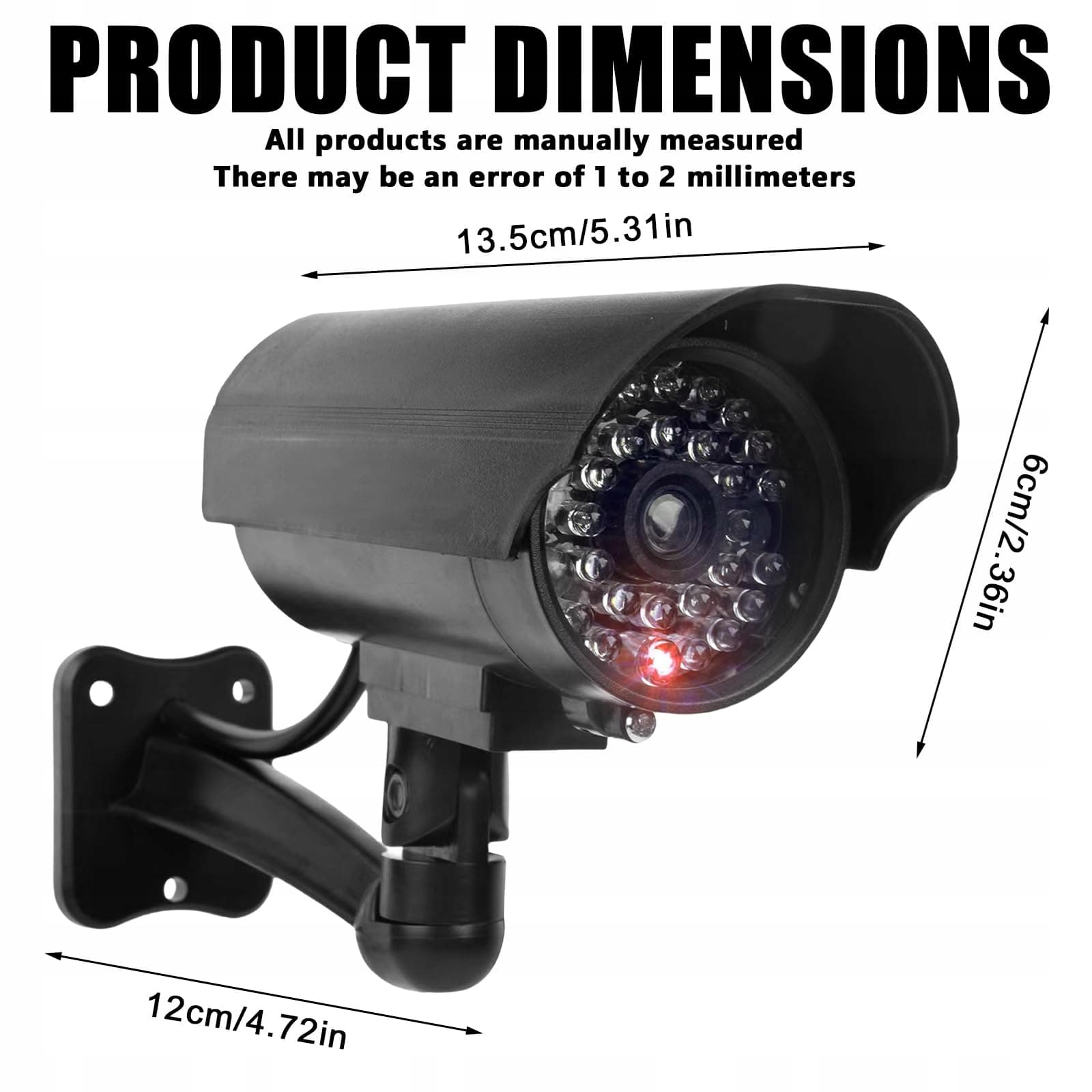GOMETY Atrapa Kamery Zewnętrznej LED Fałszywa Kamera CCTV Czarna