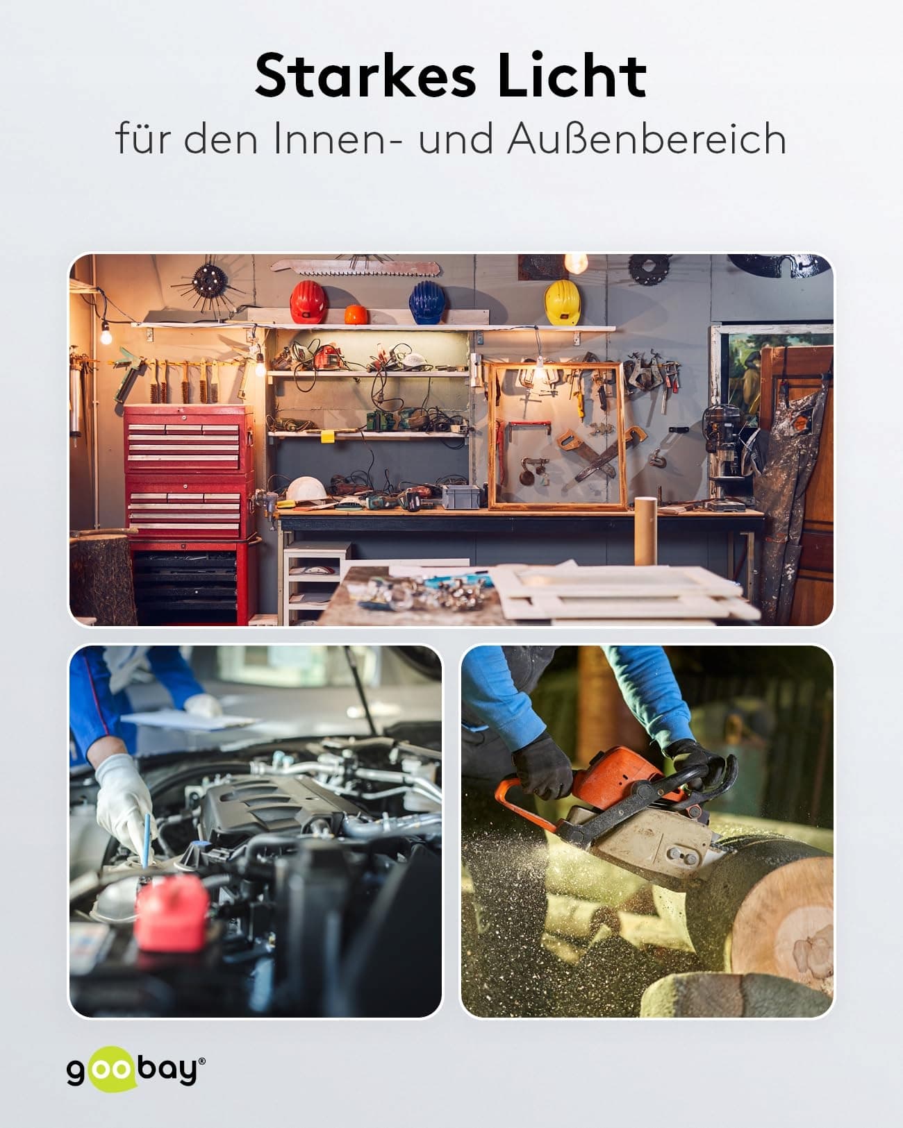 Odporna na uderzenia i bezobsługowa obudowa z odlewanego aluminium, odpowiednia do użytku na zewnątrz (IP65). Idealna do remontów, prac malarskich, warsztatu, garażu lub piwnicy
