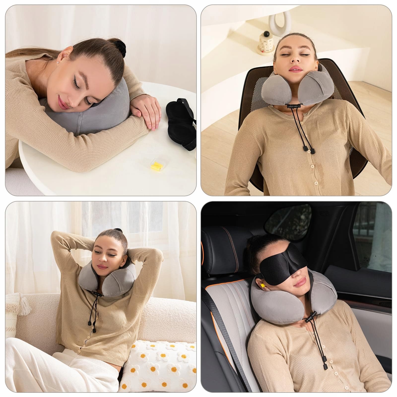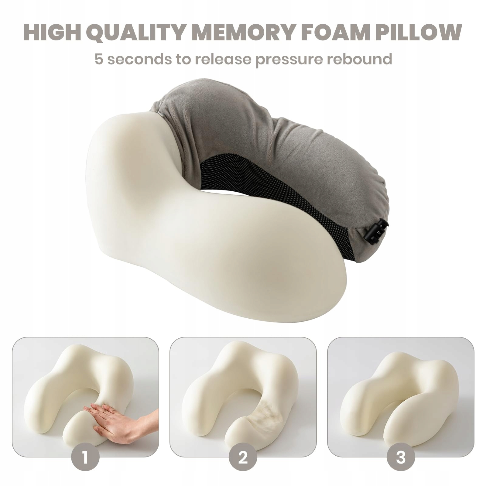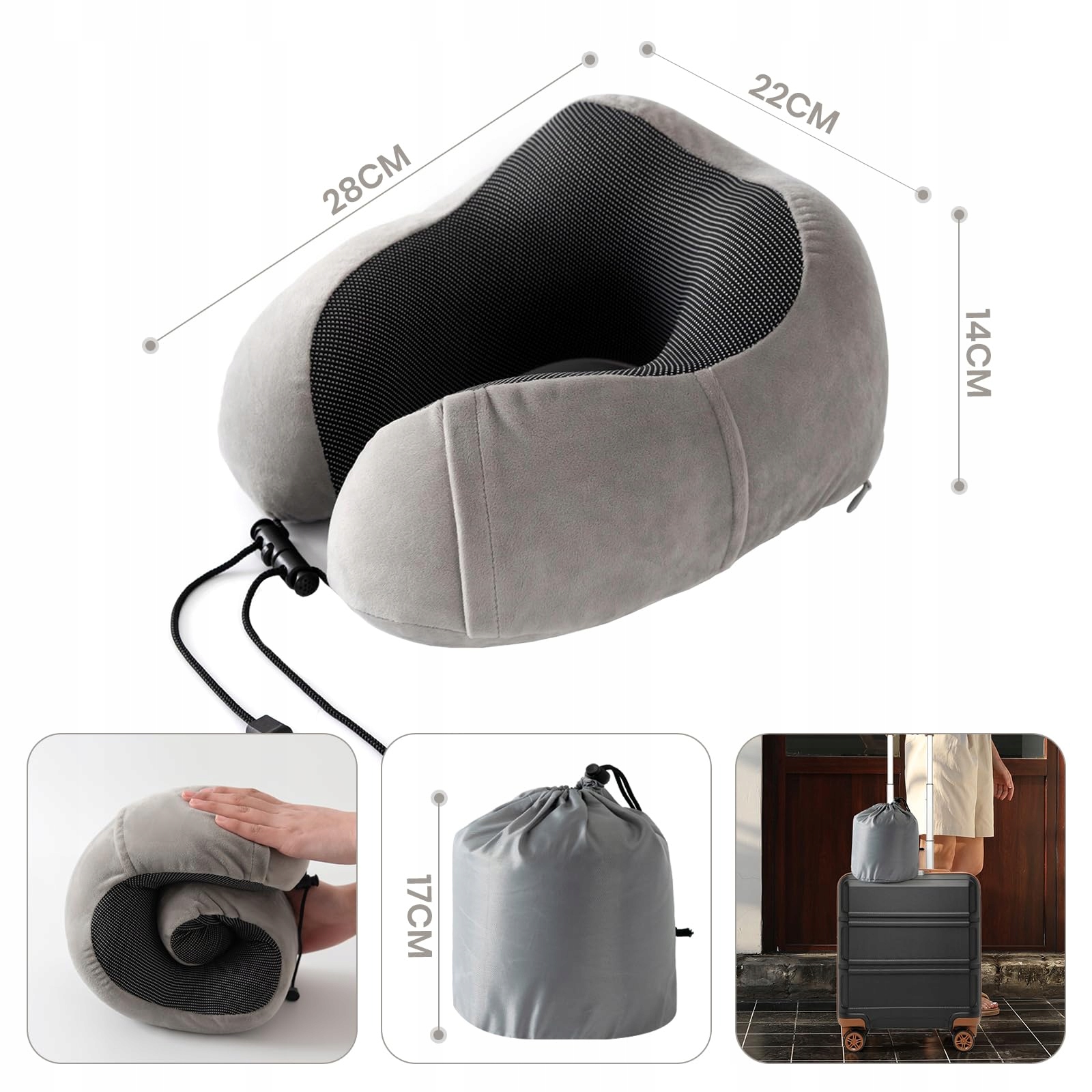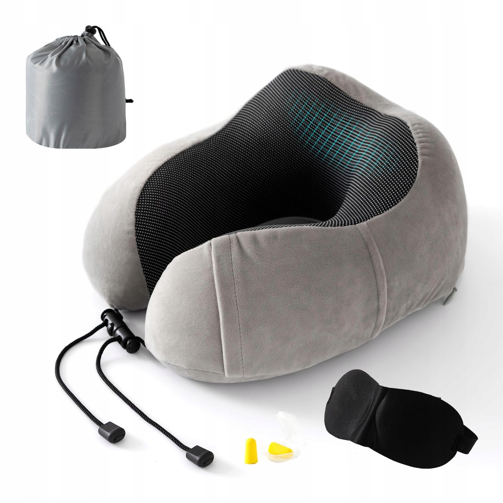 Poduszka na szyję do samolotu, poduszka podróżna, ergonomiczna poduszka z pianki pamięciowej do spania, samolot, samochód i w domu (szara)