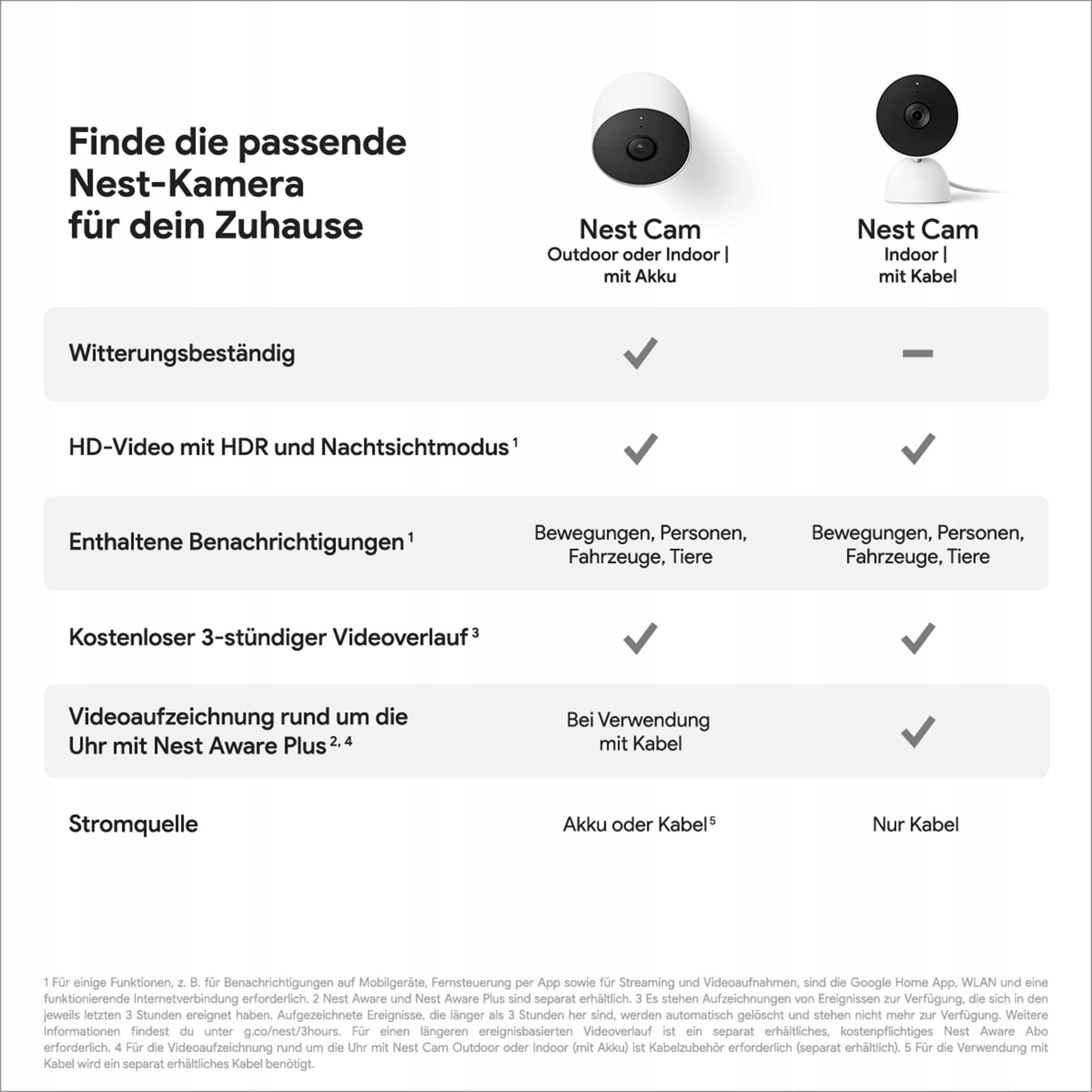 Google Nest Cam – Inteligentna kamera monitorująca do użytku wewnętrznego i zewnętrznego, Biała, 1 sztuka (1 opakowanie)