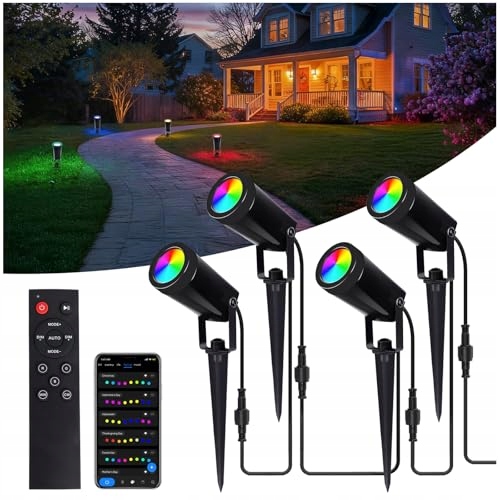 GOOGO oświetlenie ogrodowe z zasilaniem, 4-w-1 RGBCW LED lampa ogrodowa z aplikacją i pilotem, regulowana temperatura barwowa, wodoodporne oświetlenie zewnętrzne IP65 do trawników i podjazdów