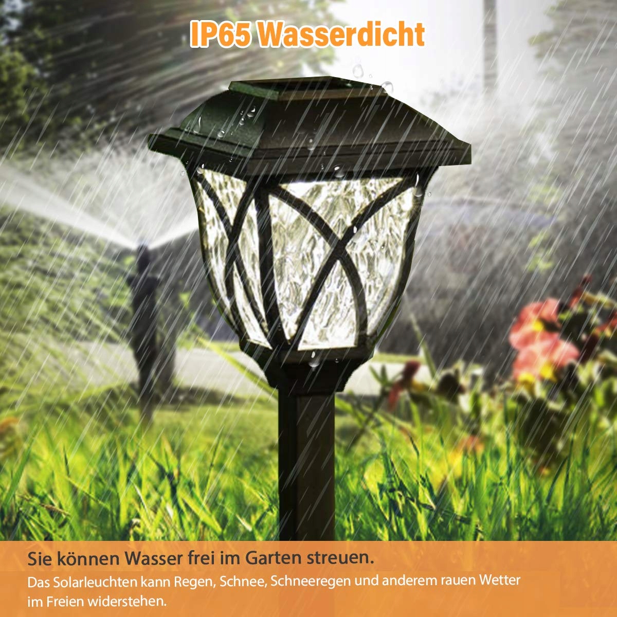 【Wodoodporność IP65】: Nie musisz się martwić o złe warunki pogodowe na zewnątrz, takie jak deszcz, śnieg, deszcz ze śniegiem itp. Możesz swobodnie rozpryskiwać wodę w ogrodzie. Funkcja wodoodporności została wzmocniona, aby wytrzymać wszelkie rodzaje pogody na zewnątrz. Te lampy solarne do ogrodu są doskonałe do ogrodu i ścieżek na zewnątrz.