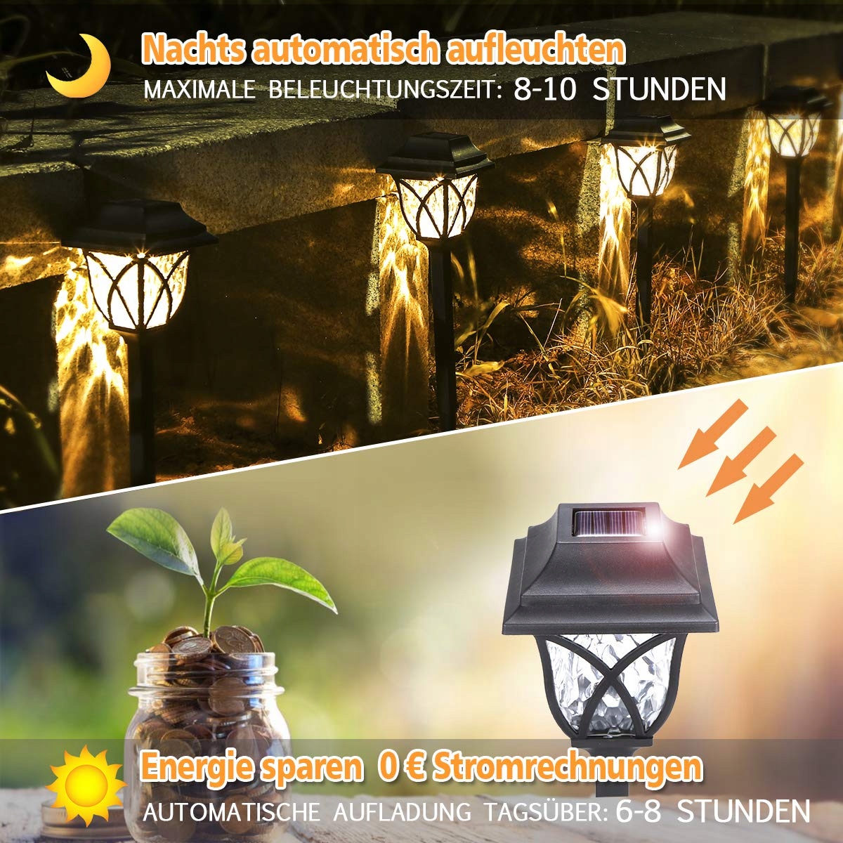 【Szerokie zastosowanie】: Lampy solarne LED o ciepłej białej barwie można zainstalować na podwórkach, w ogrodach, na małych ścieżkach, rabatach kwiatowych i innych miejscach. Dodaj swojemu ogrodowi czarujący blask i spraw, by był wyjątkowy. Możesz podarować lampy solarne jako prezenty na Dzień Ojca, Dzień Matki, Święto Dziękczynienia, Halloween, Boże Narodzenie dla taty, mamy, przyjaciół.